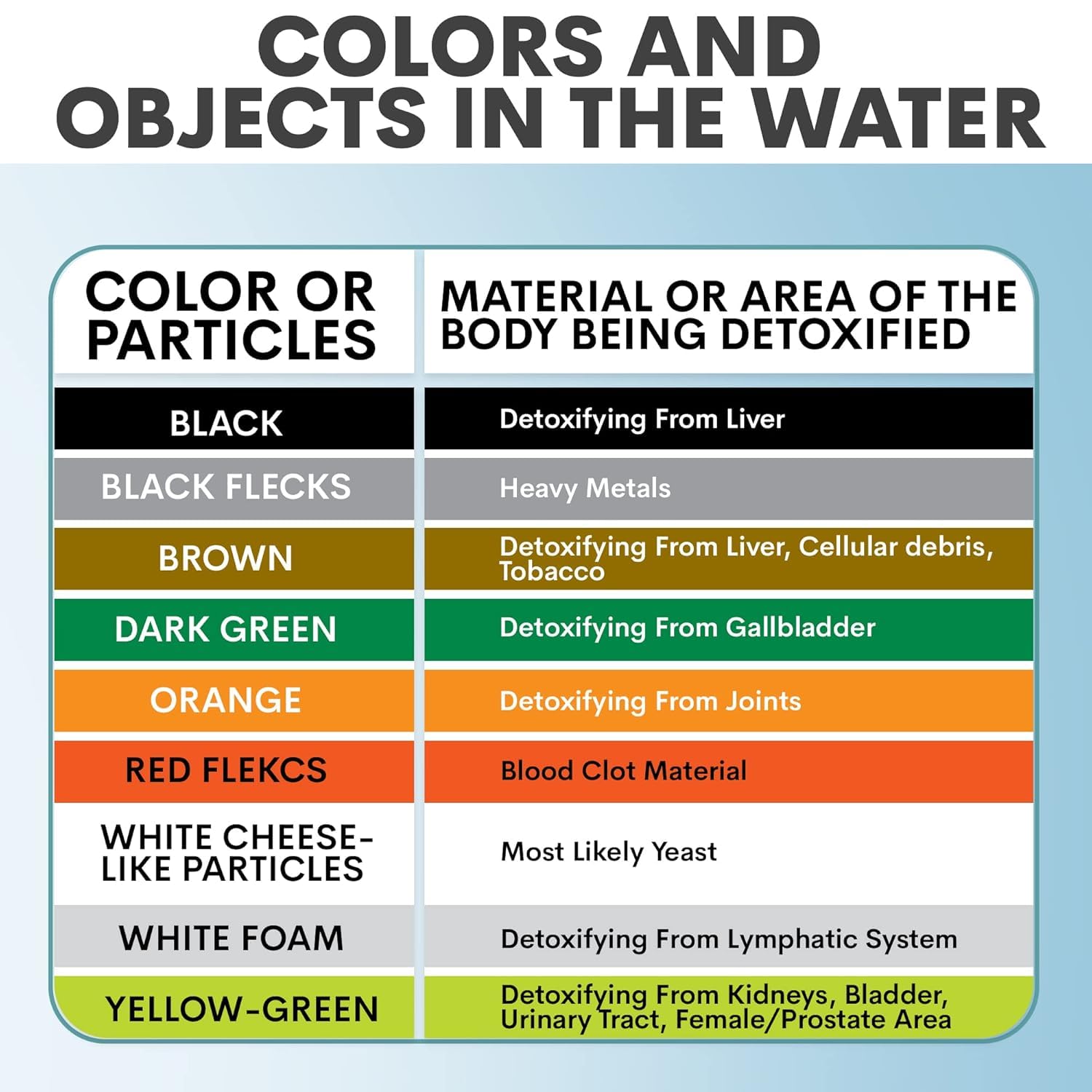 - WHATโS IN THE BOX - This ionic detox foot bath machine comes with everything you need to enjoy a relaxing and cleansing foot bath at home. You will get a controller unit, a 1/4 lb. bag of Detox Sea Salt, two reusable arrays, a white 12QT basin, an instruction manual, an ionic detox foot bath brochure, and a 16-page informational booklet.