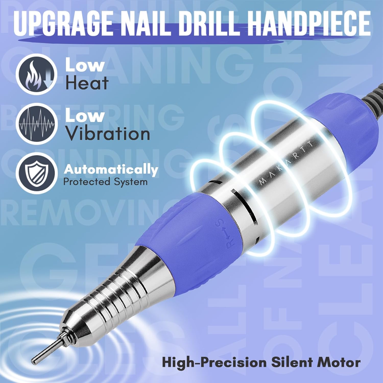- Upgrade Motor Nail Filer Electric: With high precision & high torque, Makartt E Filer for nails adopt Japanese CE Certificate bearings, truly achieving low noise low vibration and low heat. Design with ventilation for reducing the handpiece temperature. Optional speed (0-30000rmp)which is easy to adjust and shows speed signal on the motor.