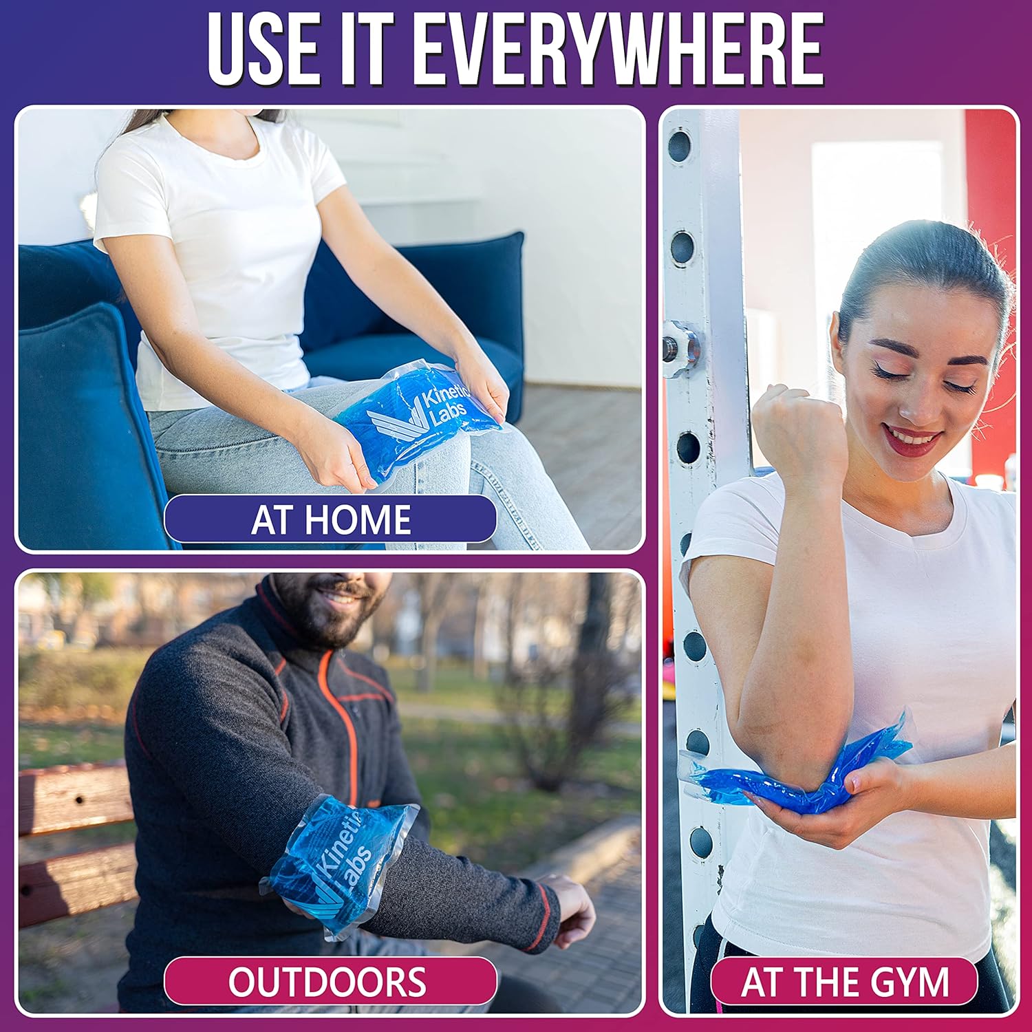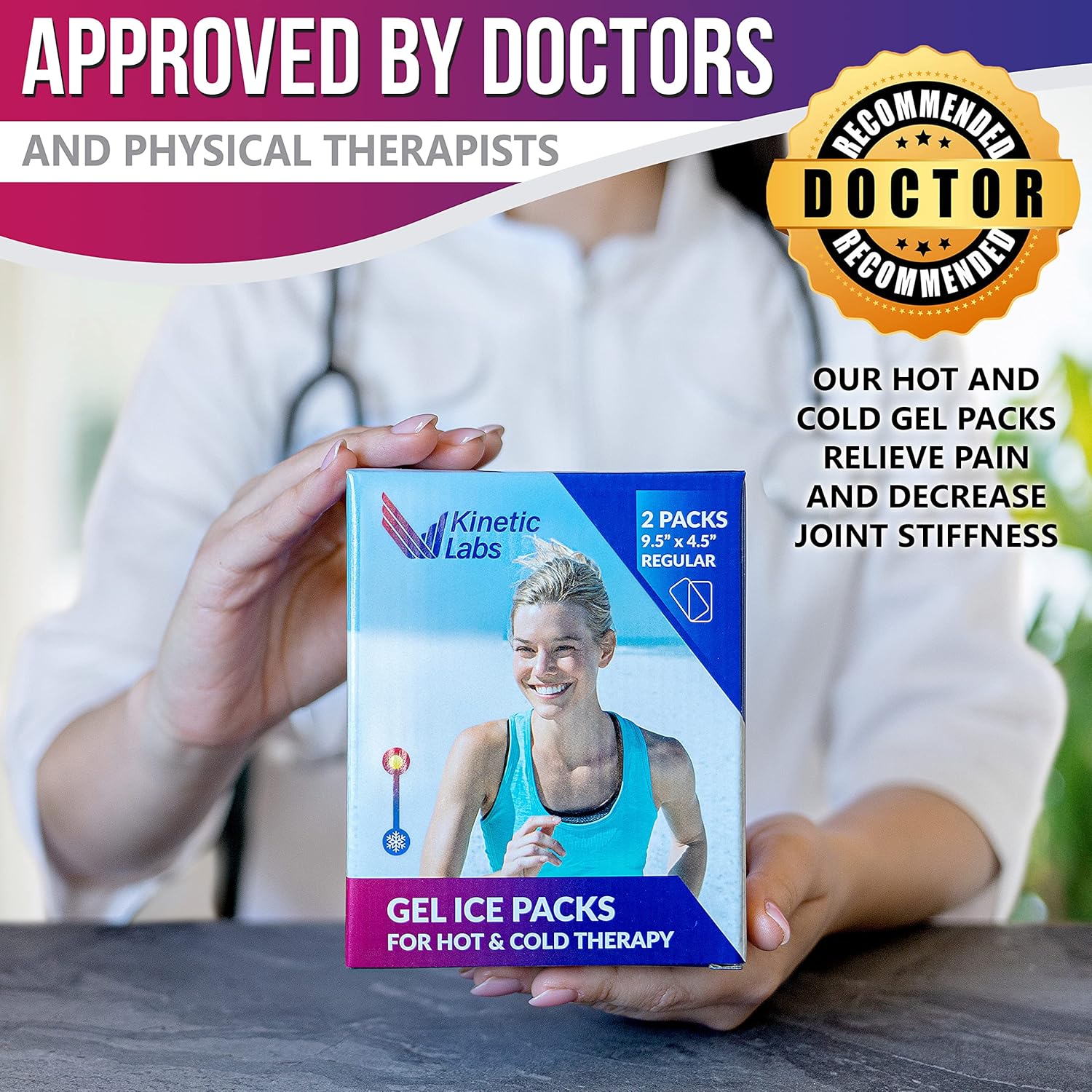 Gel Ice Packs for Injuries Reusable (2 Pack) 9.5" x 4.5" – Gel Cold Soft Ice Pack by Kinetic Labs – Flexible & Soft Packs for Knee, Shoulder, Back (Regular)