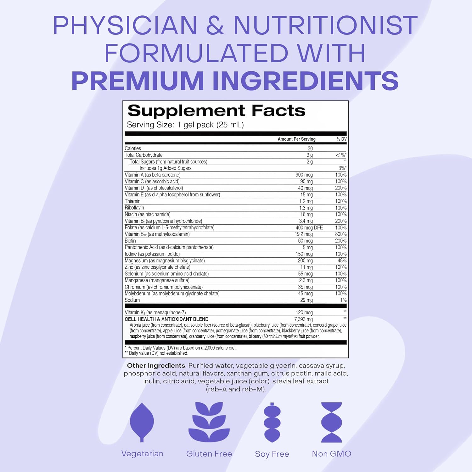 - All-in-One Formula Replaces 14 Pills: The future of vitamins is pill free. This physician and nutritionist formulated gel pack is a complete supplement with zinc, magnesium, antioxidants, and other essential nutrients to support overall vitality.
