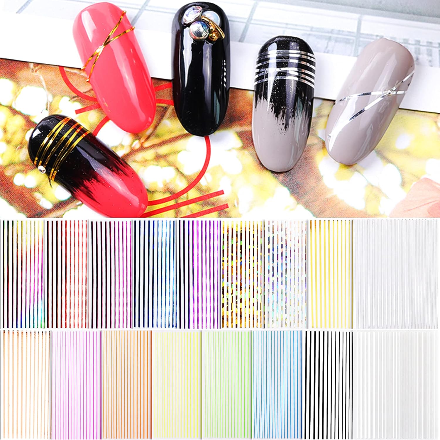 - 【Package Contains】You will receive 17 Sheets different colorful self-adhesive strip line nails stickers, which can offer you multiple choices and meet your needs. You can design any nails art as you like.