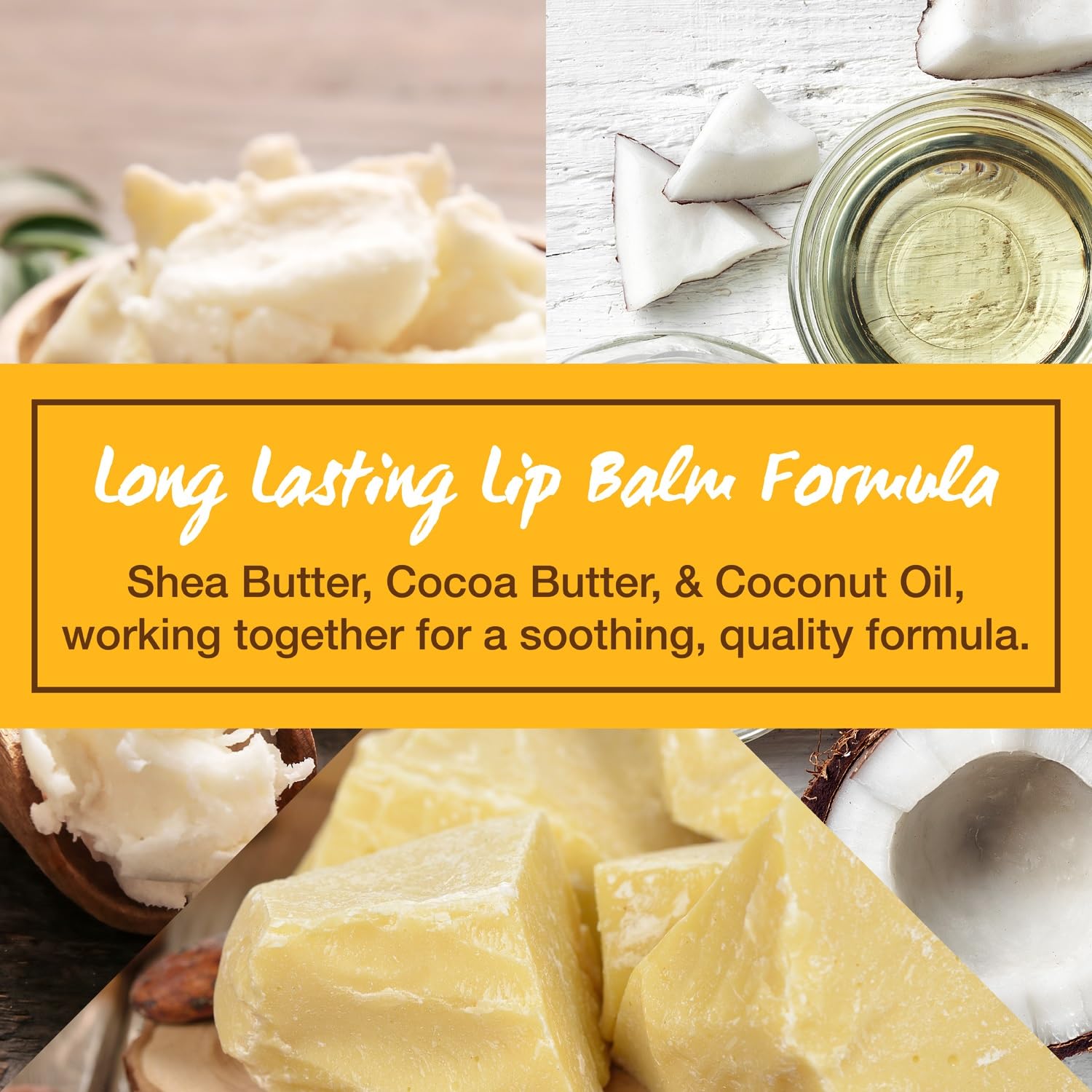 - Powered by Nature - Our premium ingredients combine for a long-lasting formula that's made to last. Cocoa Butter, Coconut Oil, Beeswax, Aloe, and Vitamin E work to restore lip moisture with a rich, creamy texture you'll want to use daily.