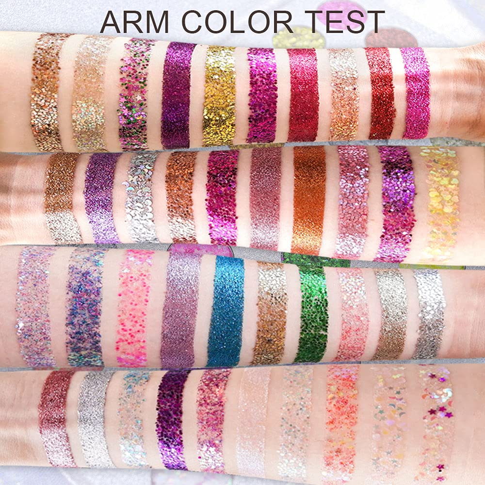 - ❤【40 Glitter Colors】 40 Colors Gel Glitter Eyeshadow Palette,Highly Pigmented,Formulated to last for long and Waterproof,without losing any of its shine,thus catering to every taste and preference.Perfect for various occasions, such as Halloween, party, wedding, bar, ball, camping, Stage makeup, or just when you want to feel like a sparkling protagonist!