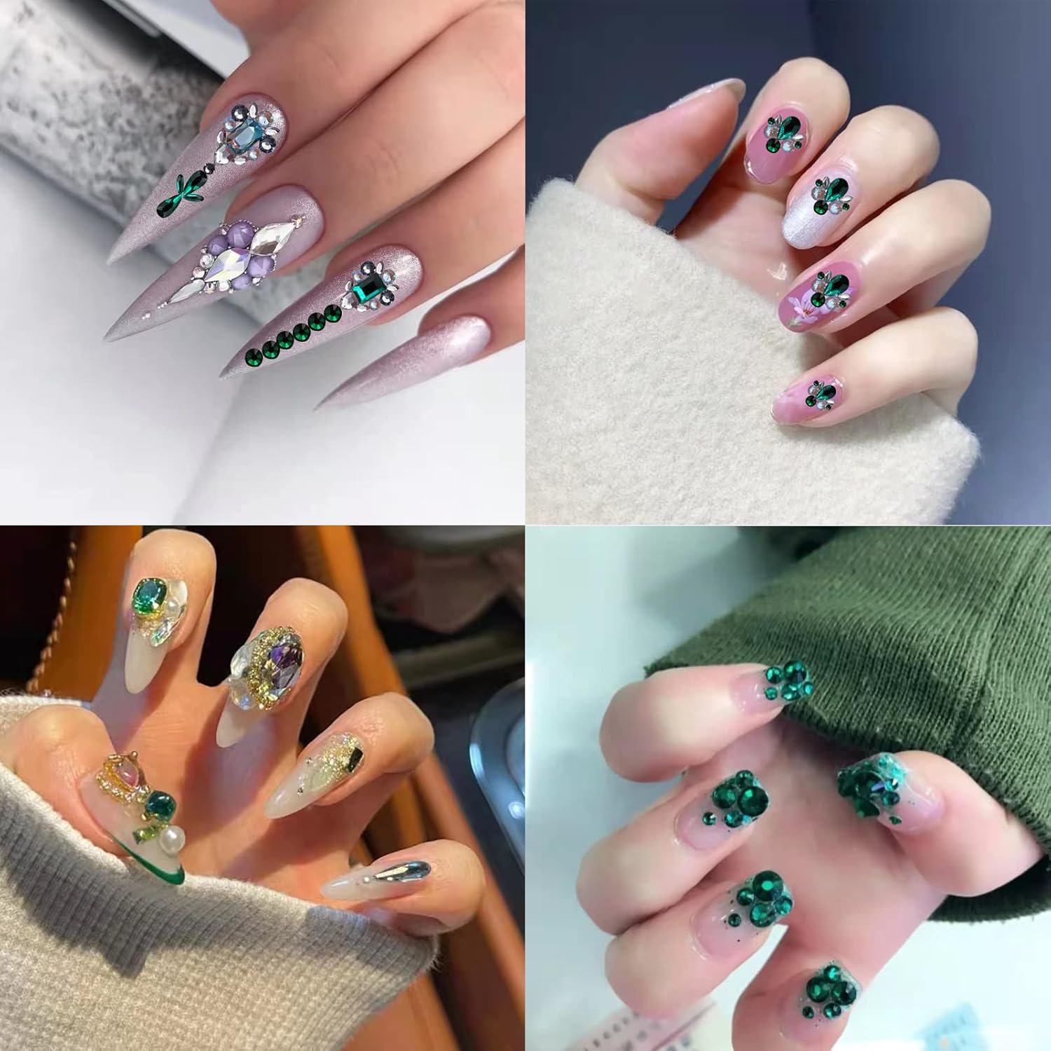 - 💎【Green Rhinestones for Nails】:The nail crystal kit includes 2500 round flat rhinestones of 8 kinds and 600 green special-shaped diamonds of 12 kinds in a transparent storage box, 1pcs nail rhinestones pen and 1pcs tweezers. Our 3D nail art rhinestones are available in different popular styles, which will add brilliance and charm to your craftsmanship and make your nails more dazzling and charming.