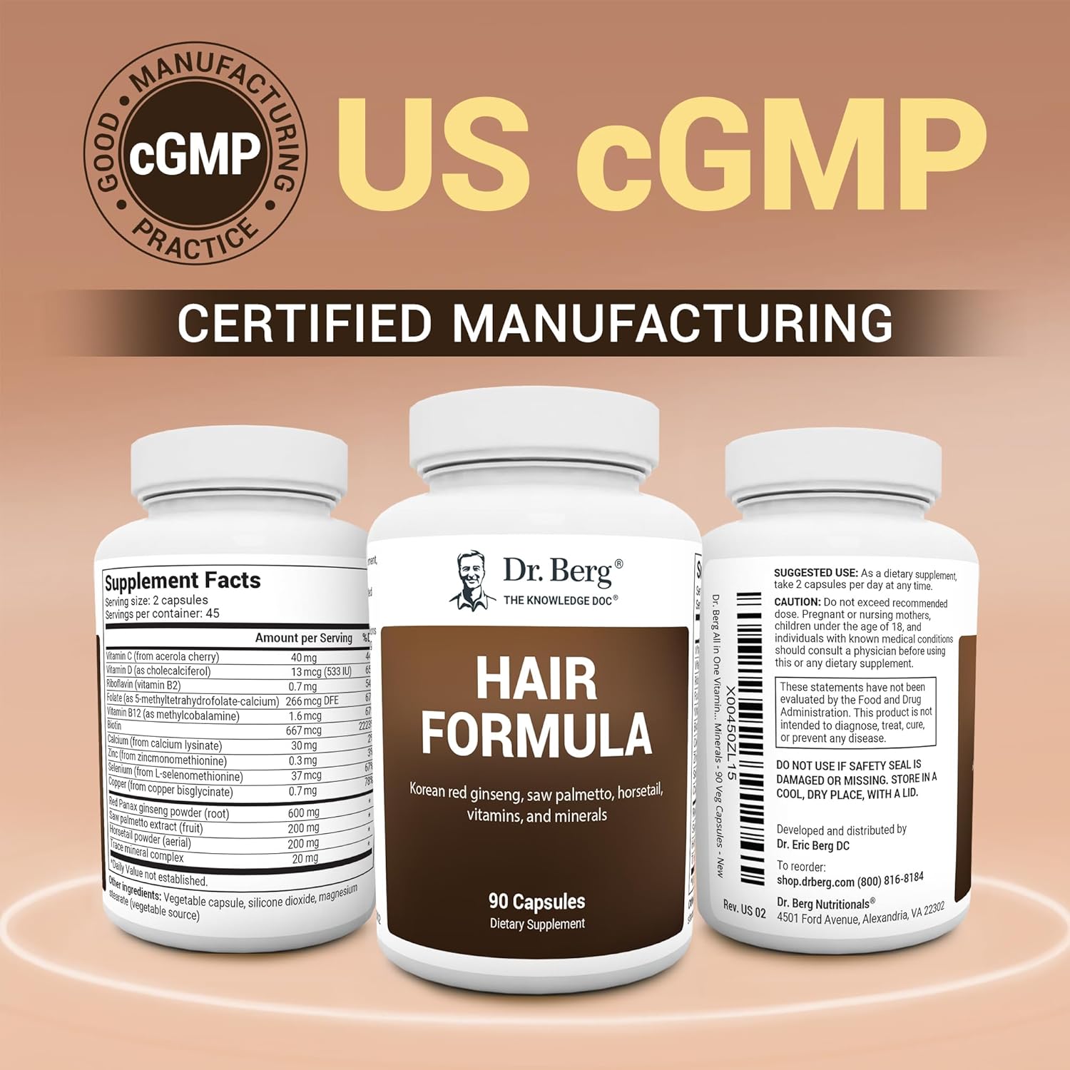 Dr. Berg All-in-One Vitamins for Hair, Skin, & Nails - Advanced Formula with Biotin, Saw Palmetto, DHT Blocker, & Trace Minerals - 90 Veg Capsules