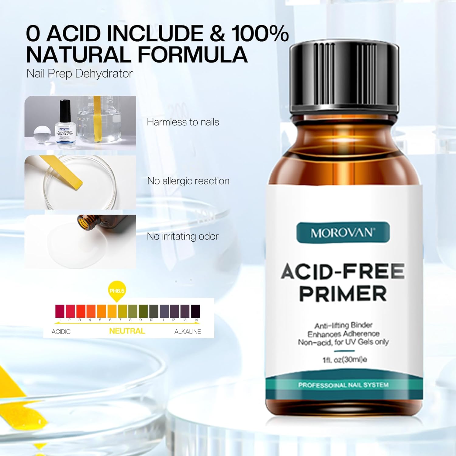 - MAXINMUN ADHESION: Morovan nail dehydrator and acid-free primer set is a necessary kit for manicure to improve gel nail polish or acrylic nail longevity. The most important step to create a foundation to prepare nails when doing professional artificial nail application.