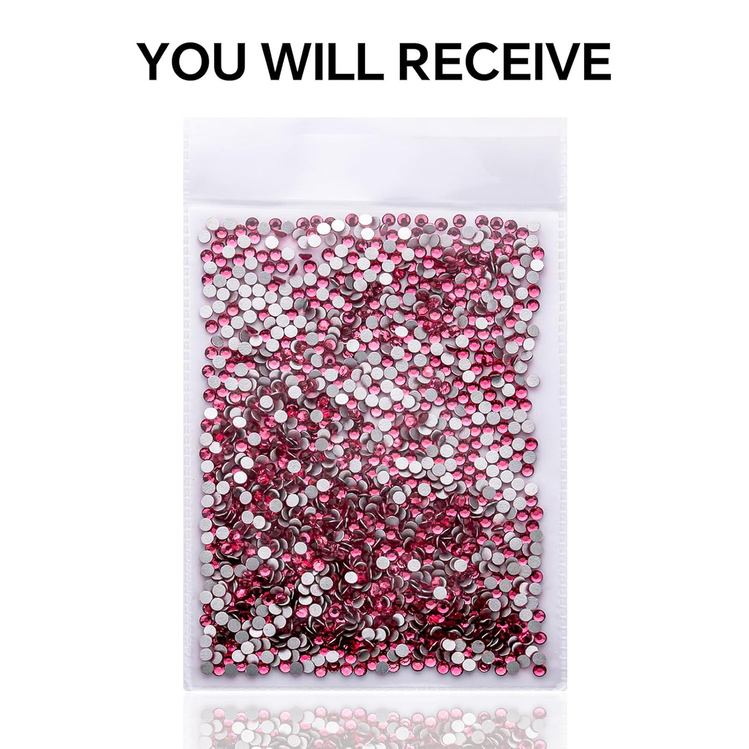 1440Pcs Rose Crystal Rhinestones,Glass Flatback Rhinestones Gemstones Mini for Nail Face Makeup Art Crafts Clothes Decoration -(SS6,2.0mm,Rose)