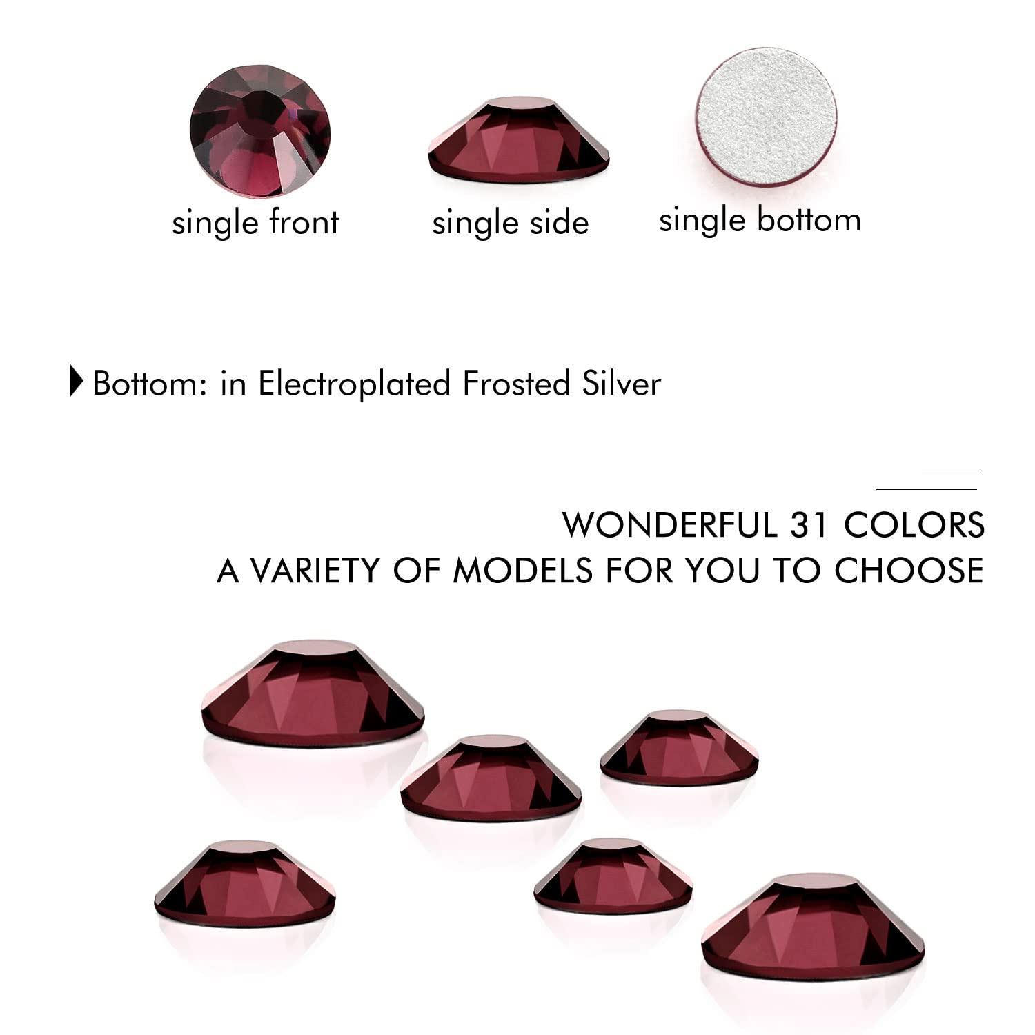 - Different Sizes Available:These rhinestones for crafts come in a wide range of sizes (1.6mm, 2mm, 2.4mm, 2.8mm, 3mm, 4mm, 4.8mm) to suit your different needs