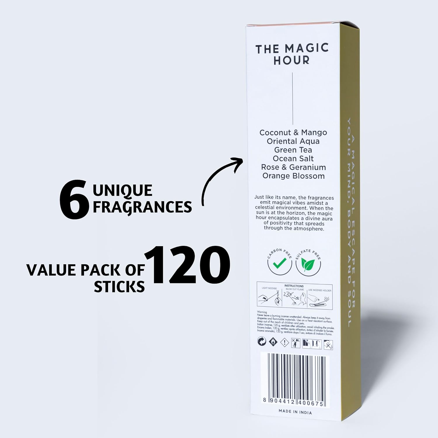 - Fragrance Notes โ This incense pack combines uplifting citrus notes with breezy oceanic undertones with fragrances like coconut incense, mango incense, oriental aqua, ocean salt, green tea incense, rose inscents, geranium incense & orange incense. Suitable for meditation rooms, bedrooms, living areas, and even office spaces.