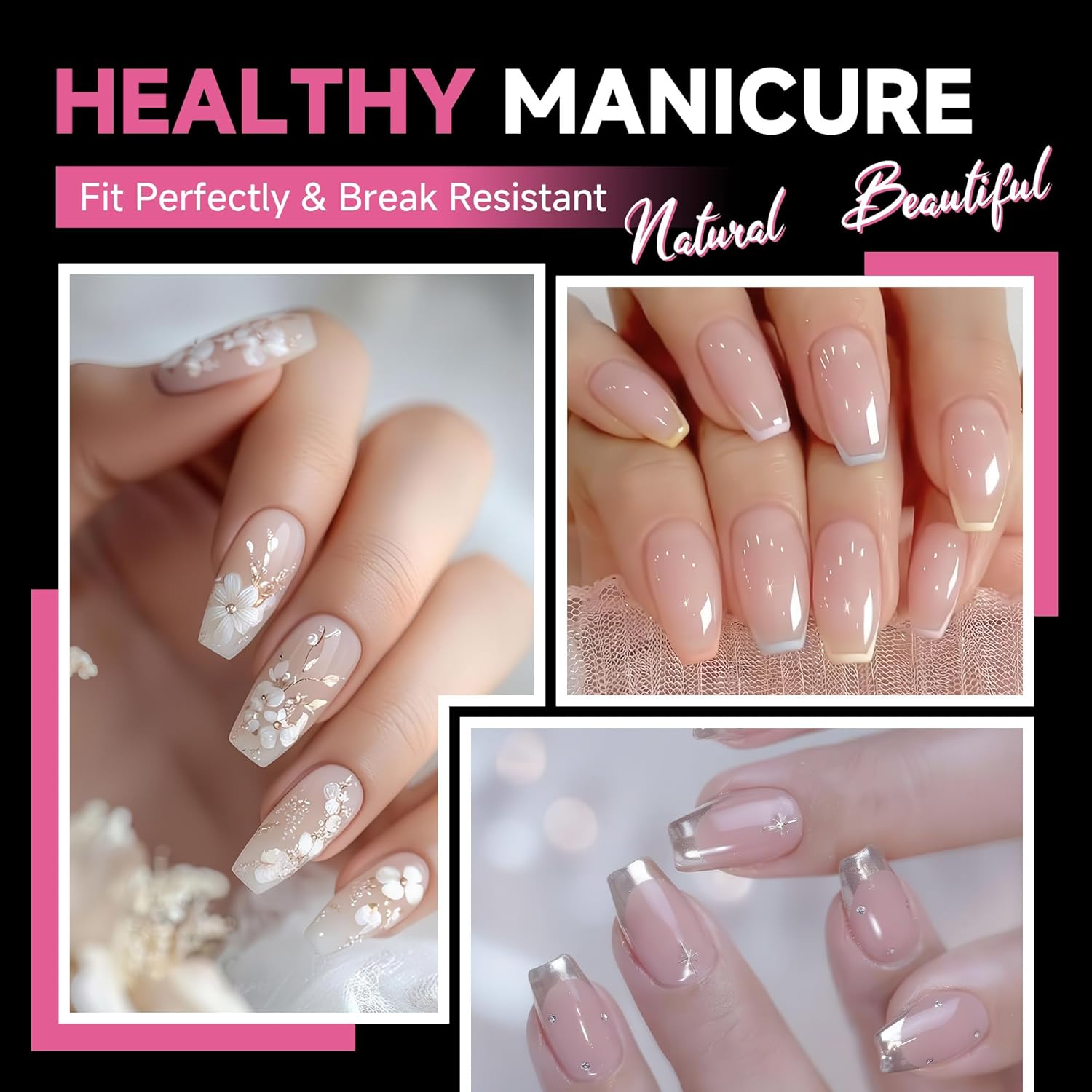 - ❤️Easy to Apply : Our smooth edge of tips have a more shallow curve, convenient to press on nails beds tightly, without feeling uncomfortable "tightness", keep the color good without separation or exposure, your nails will look more naturally. Innovative Big&Deep-Matte-Pre-shape tips really no need file and saving much your time, more sturdy sticking.