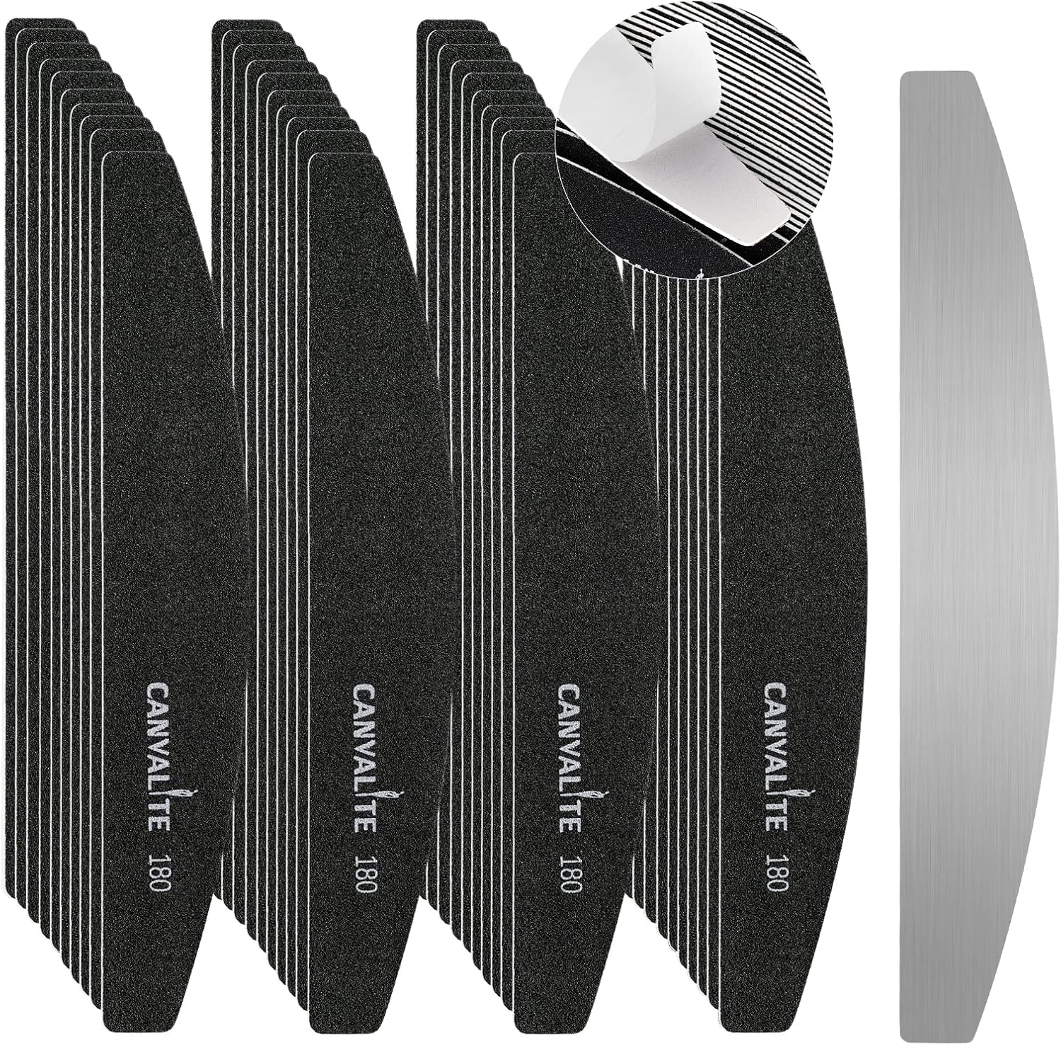 Canvalite 40 PCS Nail File Professional Reusable Peel and Stick Nail Files Replaceable Emery Boards 180 Grit Fingernail Files Manicure Tools for Home and Salon Use