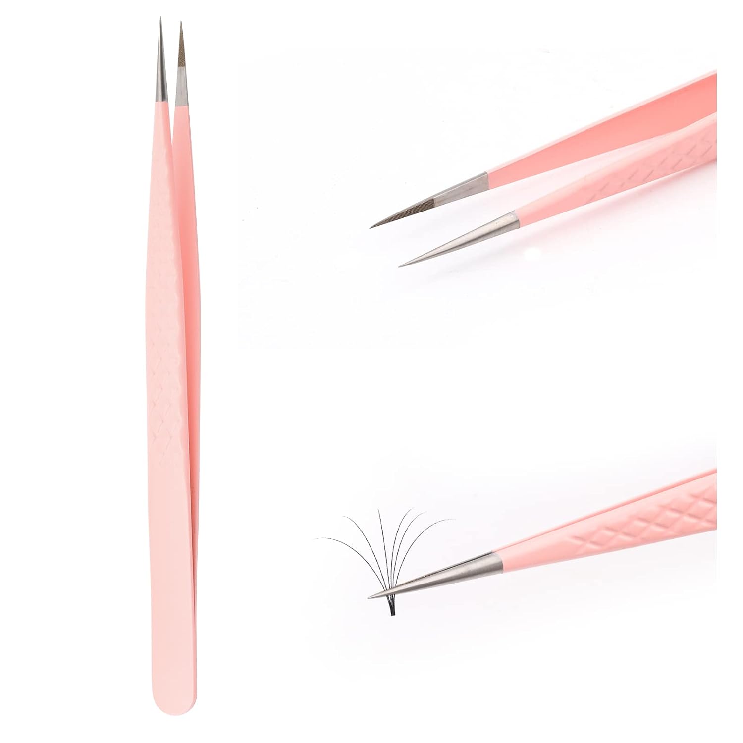 FADLASH Precision Lash Tweezers - Straight Fiber Tip Eyelash Extension Tweezers - Professional Artist Tech Work Kit - Pink