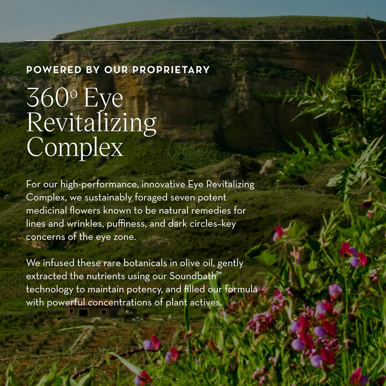 - 360ΒΊ Eye Revitalizing Complex: A proprietary blend of 14 wild-foraged plants, including artichoke and dandelion, to lift, awaken, and revitalize the extended eye area.