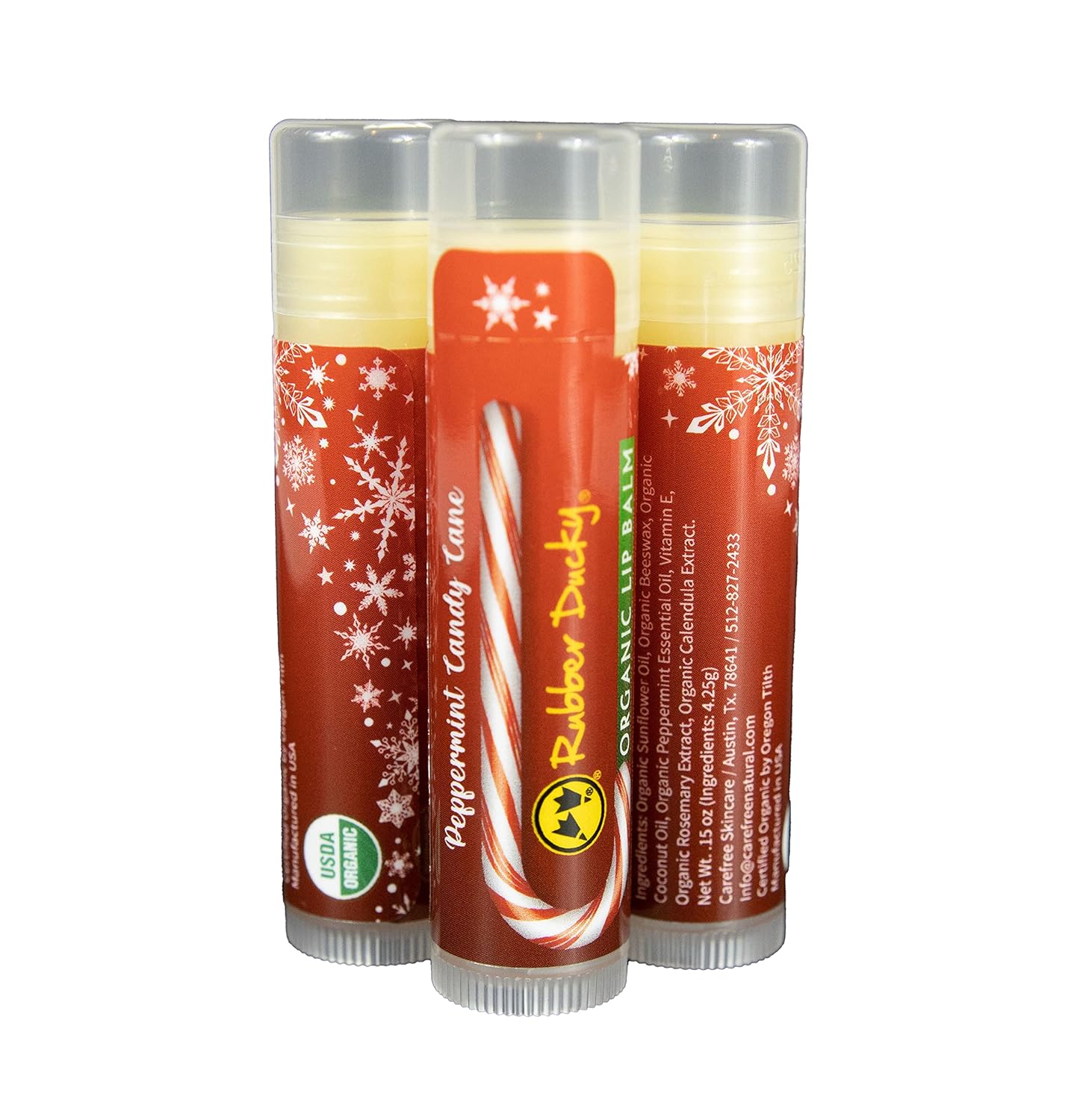 Rubber Ducky Carefree Natural Organic Lip Balm - Instant Hydration & Lip Moisturizer for Very Dry Lips - Vanilla Mint Lip Balm Flavor with Vitamin E - Vegan, Certified Organic Lip Care - 3 Pack