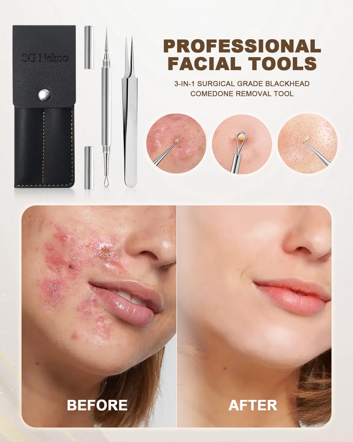 - FULFILL MULTI PURPOSE NEEDS: It will perfectly work to remove blackhead, milia, whitehead, zit, pimple, splinter, deep cystic acne, pus around your nose, face, chin, forehead, cheeks and anywhere on your body; Great for professionals and personal care;