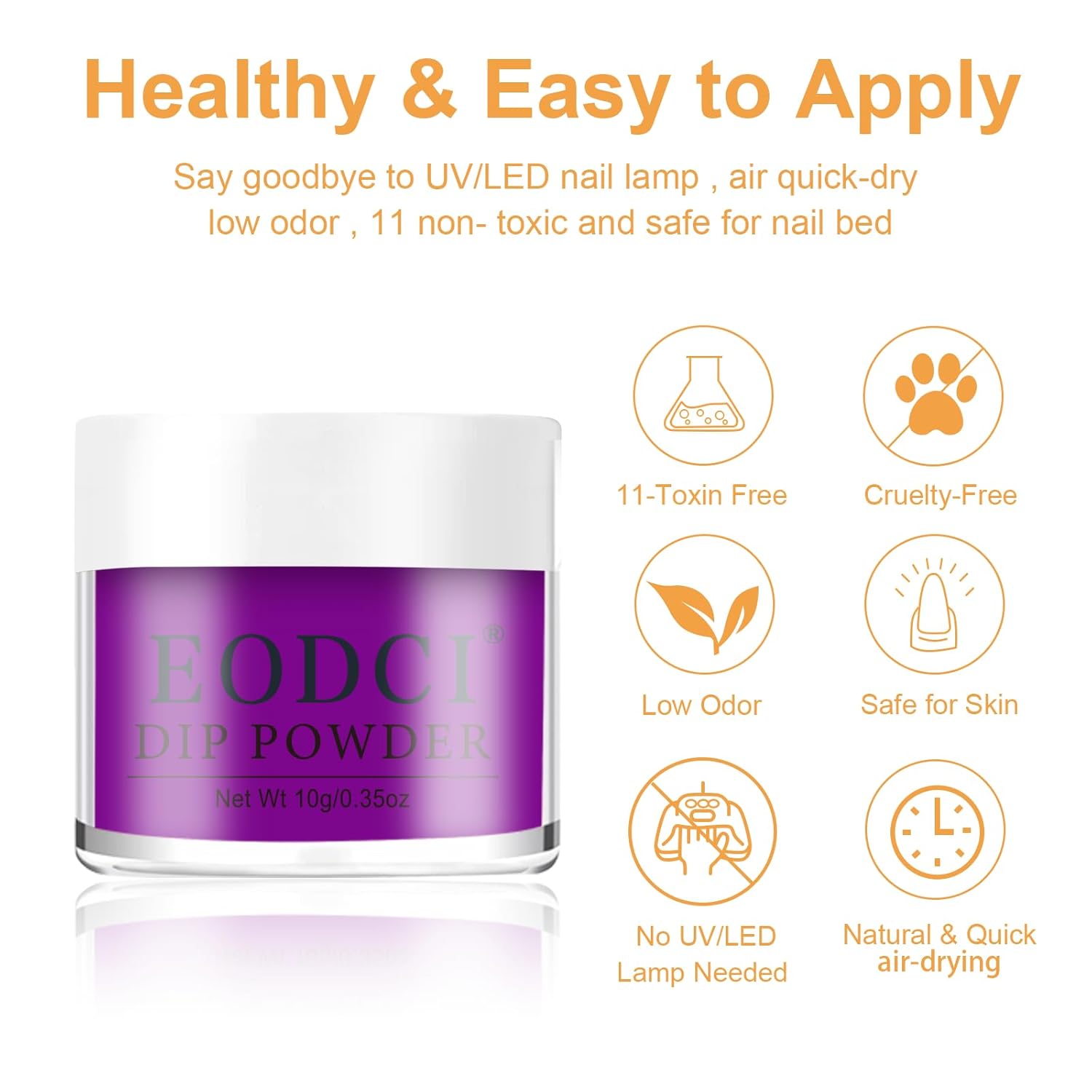 - 【No Lamp Needed】Eodci Nail Dipping Powder does not require UV/LED light to cure, is skin friendly while avoiding skin darkening and damage, safe and easy to use, suitable for beginners and professional nail salons.