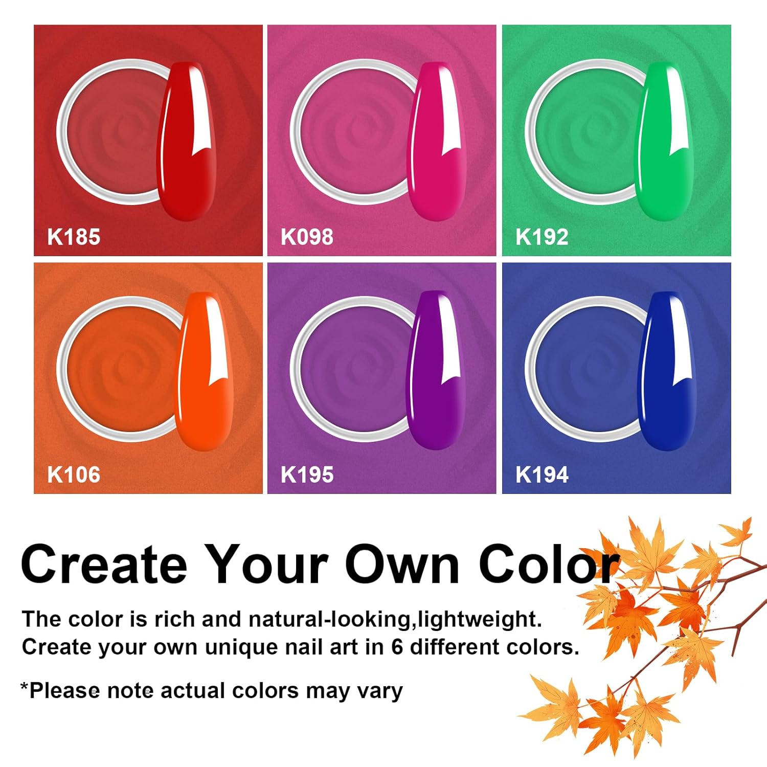 12 Pcs Dip Powder Nail Kit Starter Kit, 6 Colors Pink Red Orange Green Blue Dipping Powder Kit with Base & Top Coat/Activator/Brush Saver, Nail Art Dip Manicure Kits Salon DIY for Women