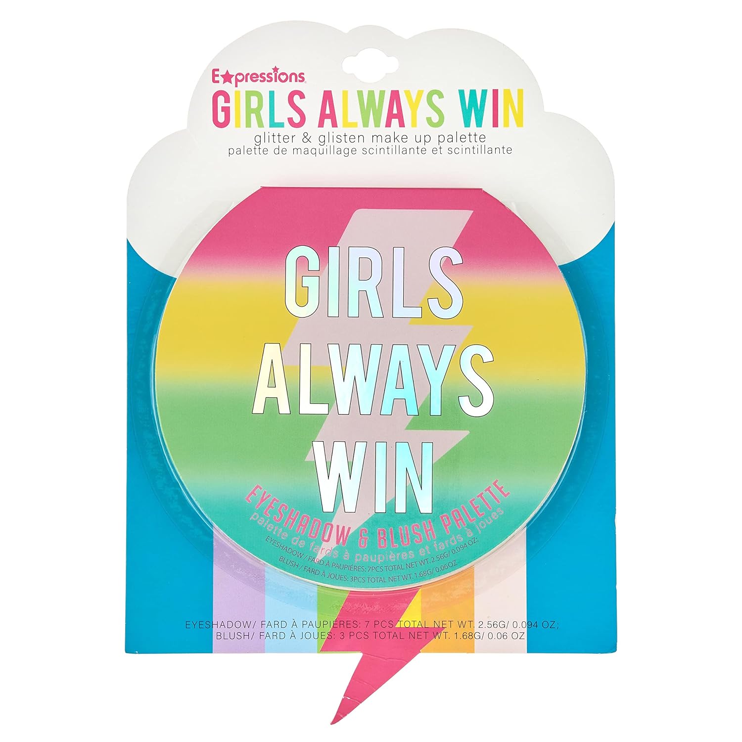 - Makeup Mirror - The makeup palette includes a small mirror inside the compact so you can do your makeup wherever you are; The GIRLS ALWAYS WIN glitter eyeshadow is decorated with colorful stripes and a lightning bolt-shaped beauty mirror