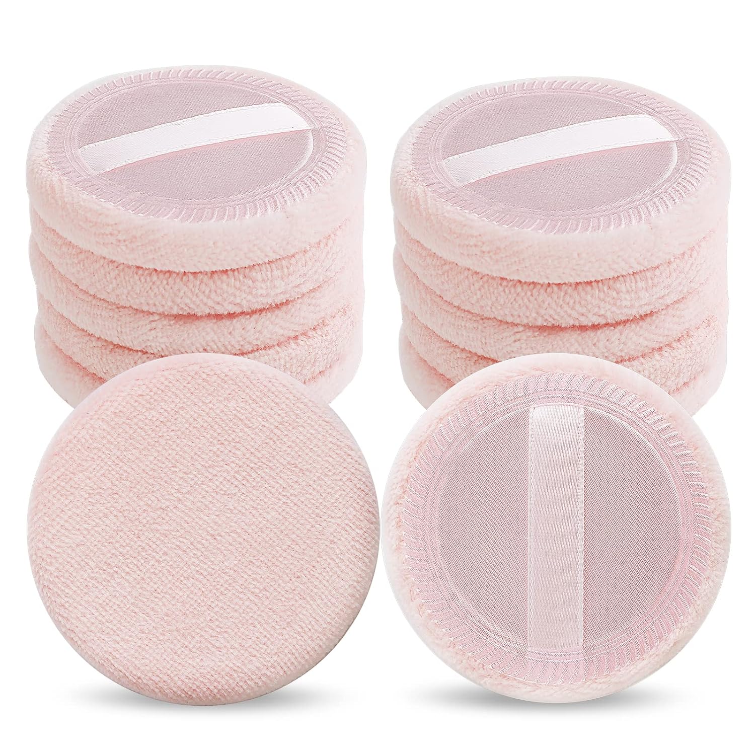 - 【Pink Powder Puff Round】: Our round loose powder sponge is suitable for applying foundation, loose powder and other cosmetics during makeup, making your makeup look more natural, these powder puffs are very suitable for all kinds of skin, whether you are oily skin, normal skin, dry Skin, combination skin, can use it, with ribbon design on the back, fingers can be put in, not easy to slip off when patting, can provide you with a smooth and flawless even base makeup.