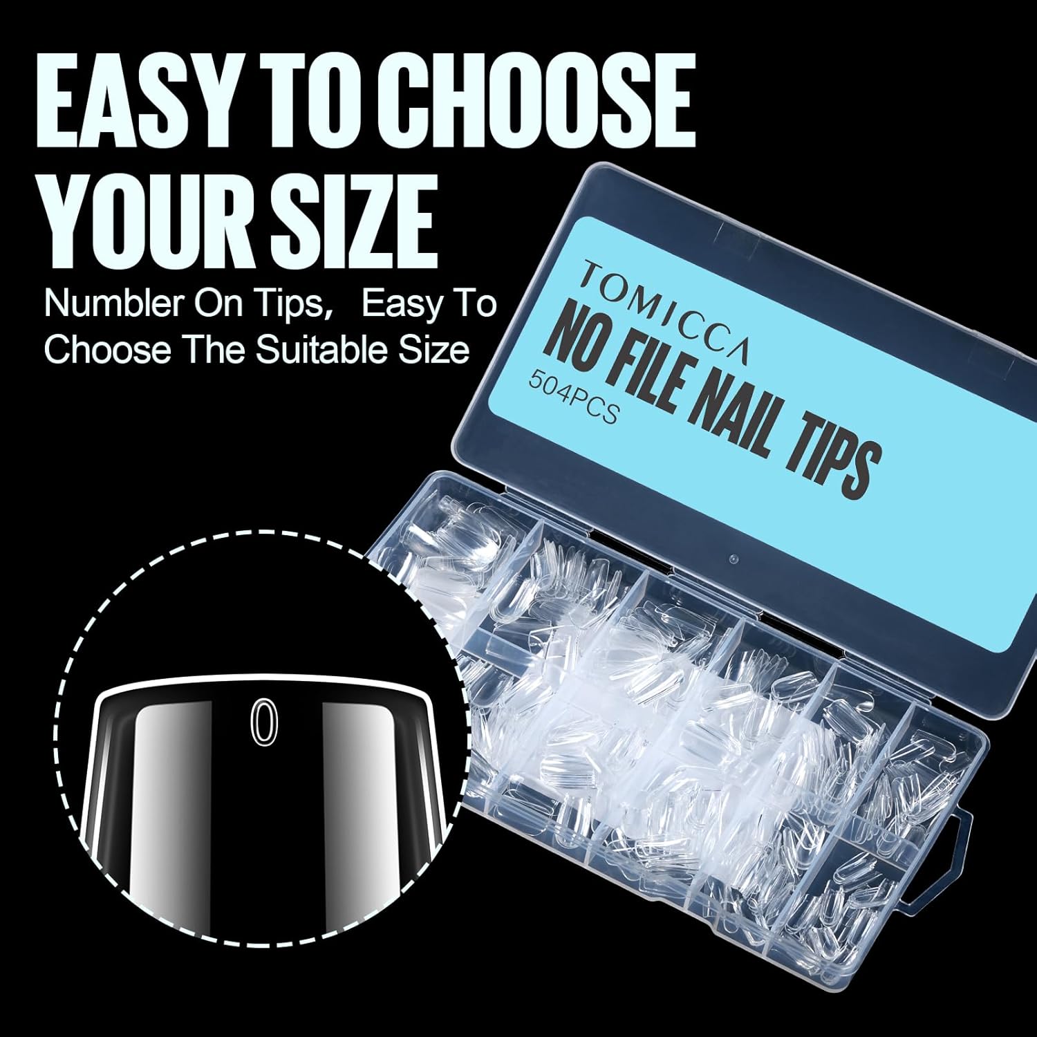 TOMICCA Short Square Nail Tips, 504Pcs Clear Press on Nails Square Full Cover Nail Tips Clear False Press on Nails, Soft Tips for Gel Nail Extension DIY Nail Salon 12 Sizes