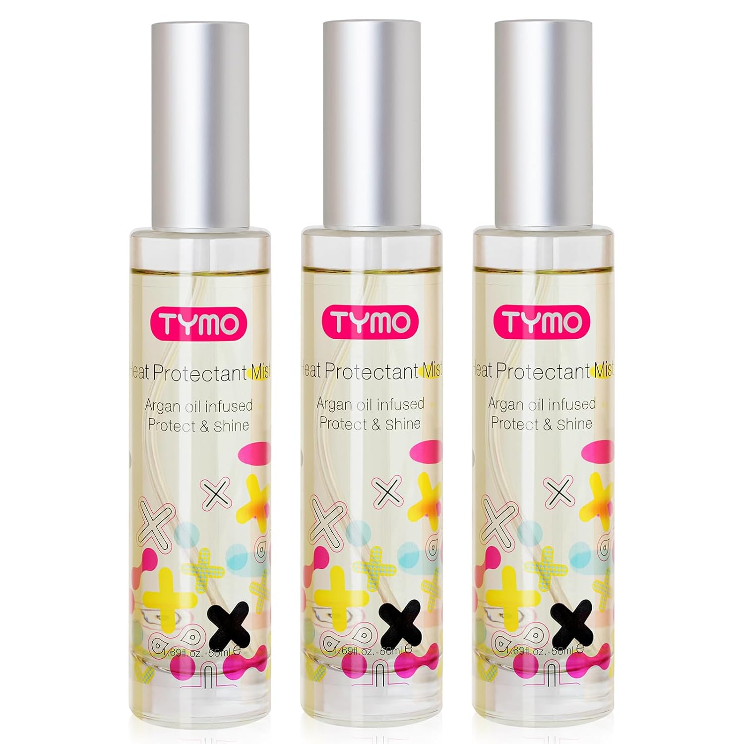 TYMO Heat Protectant for Hair with Argan Oil for Heated Styling Tools, Leave in Conditioner Spray to Smooth & Hydrate, Natural Pure Formulation, Multi-benefit Treatment, Lightweight Spray, Pack of 3