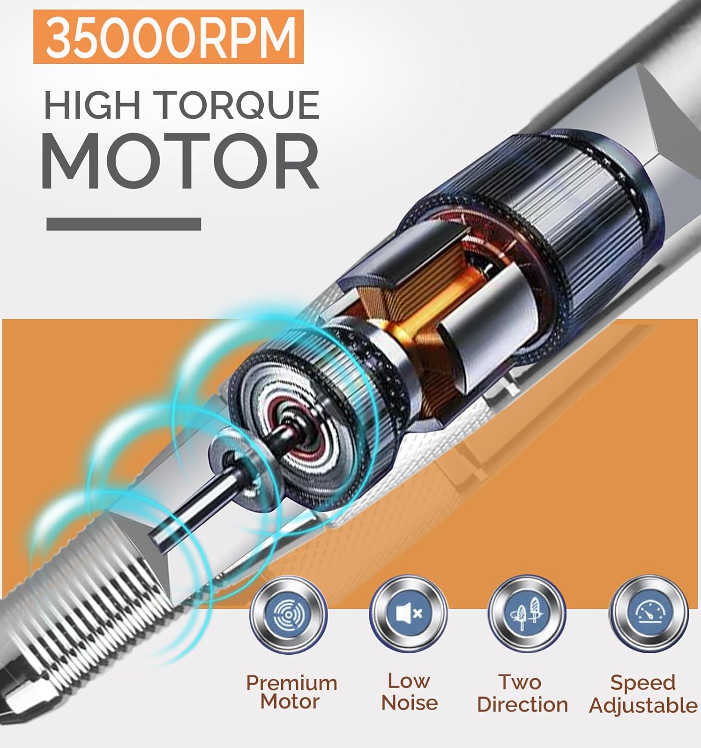 Professional Cordless Electric Nail Drill Kit – 35000 RPM Rechargeable E File with 10+ Hour Battery, 6-in-1 Bits – Portable Acrylic Gel Remover for Salon/Home,Drills para Uñas Professional