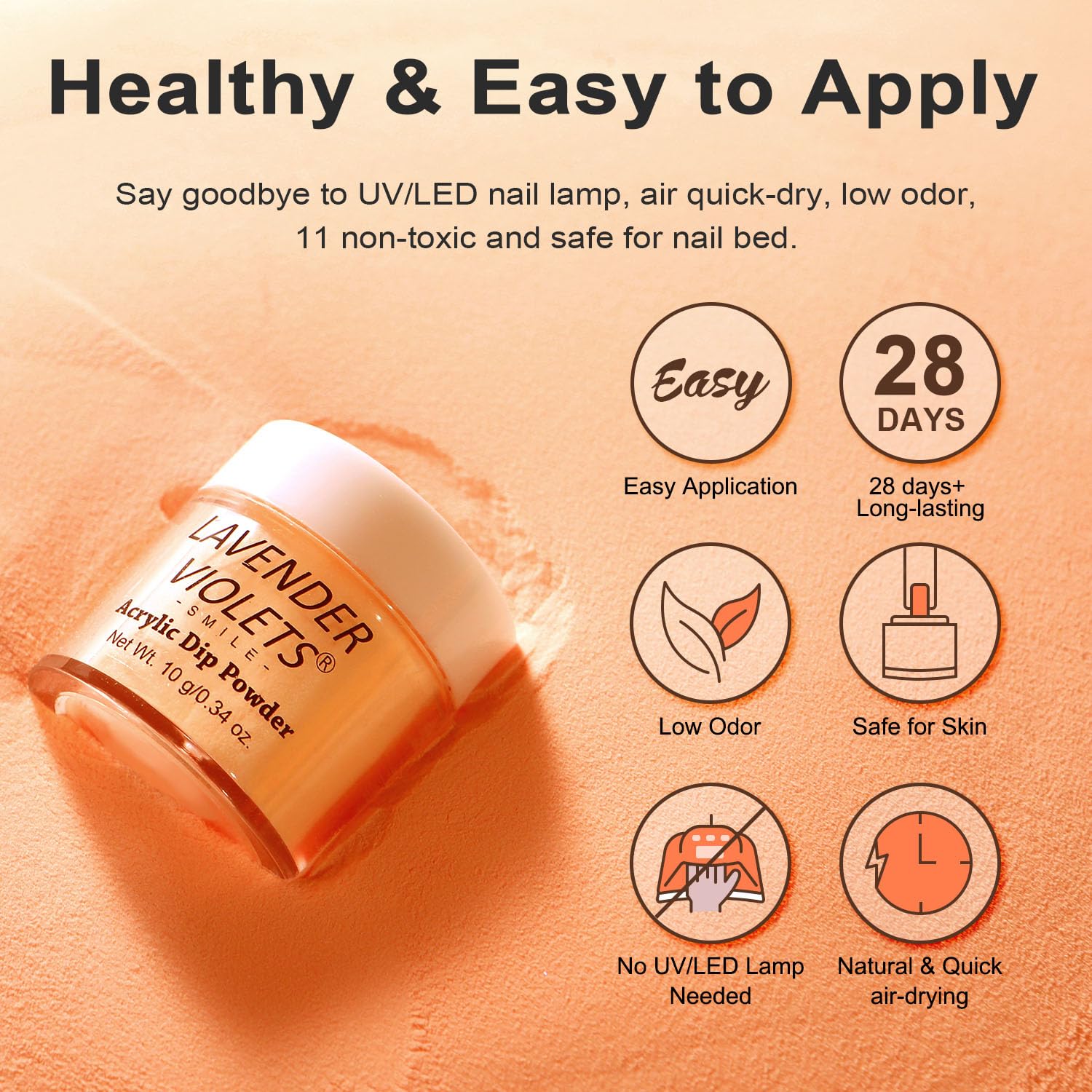 - Great Choice for Acrylic Dip Nail Art: Be fashionable and trendy with Lavender Violets Dip Nails Powder Set, 16 stunning colors which includes pumpkin fall yellow orange gold red and brown, enable you to create more than 100 dips nail design.