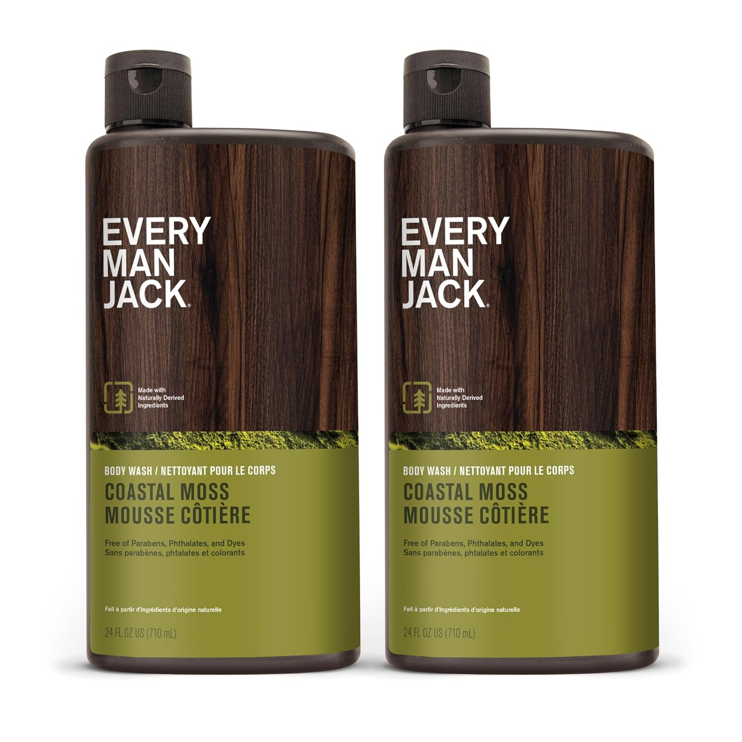 Every Man Jack Nourishing Coastal Moss Mens Body Wash for All Skin Types - Naturally Derived Ingredients - Cleanse and Hydrate Skin with Coconut and Glycerin - 24oz 2 Bottles