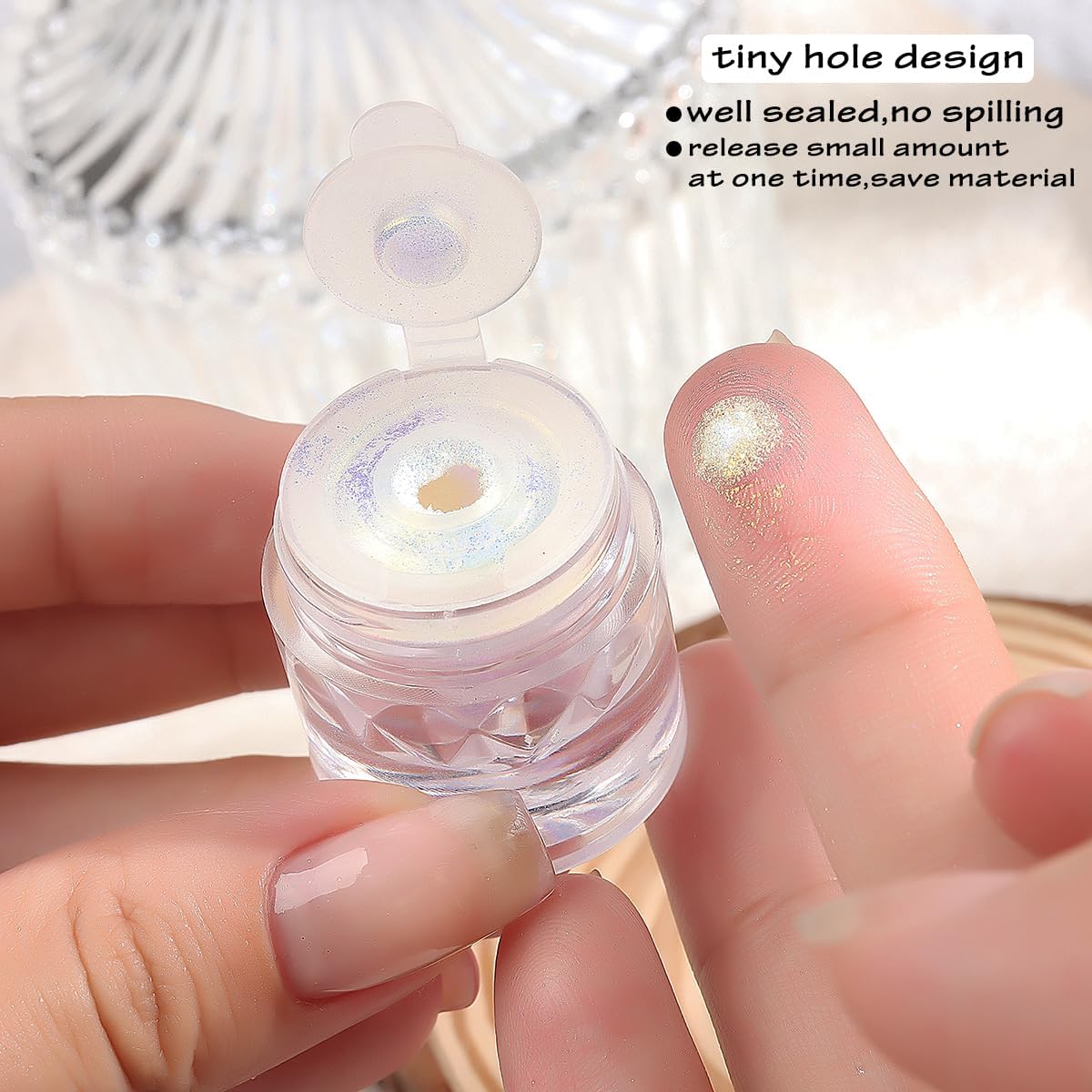 - 【Narrow mouth design】The powder is well sealed in a beautiful jar. On the bottle cap there is only one small narrow hole,you can only pour out very little amount at one time,which will prevent the powder from spilling and save the material for more nail designs.