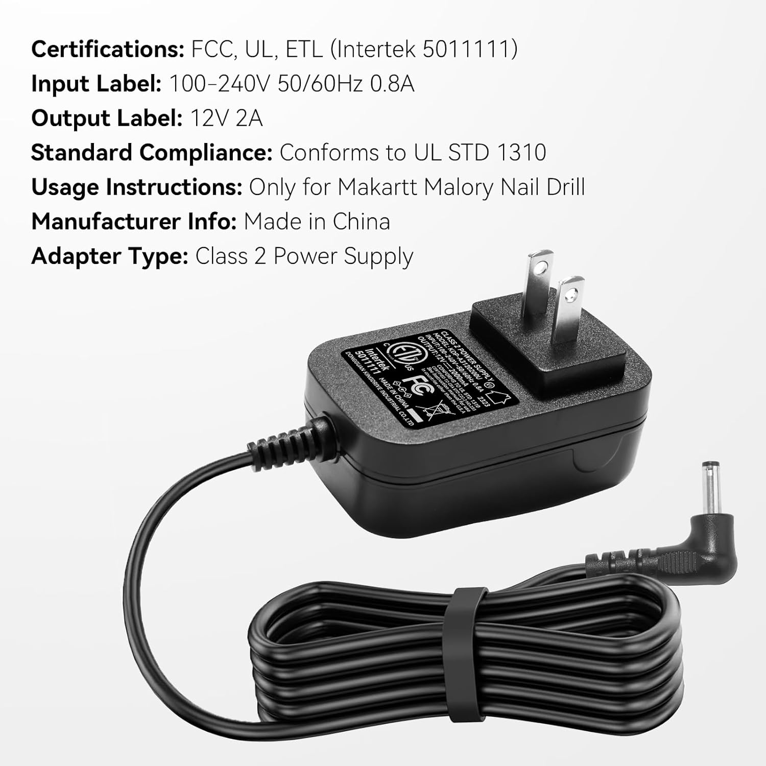 - Warm Tips: This charger adapter is only compatible with Makartt's Malory nail drill. Please confirm the brand and model of your nail drill before placing an order.