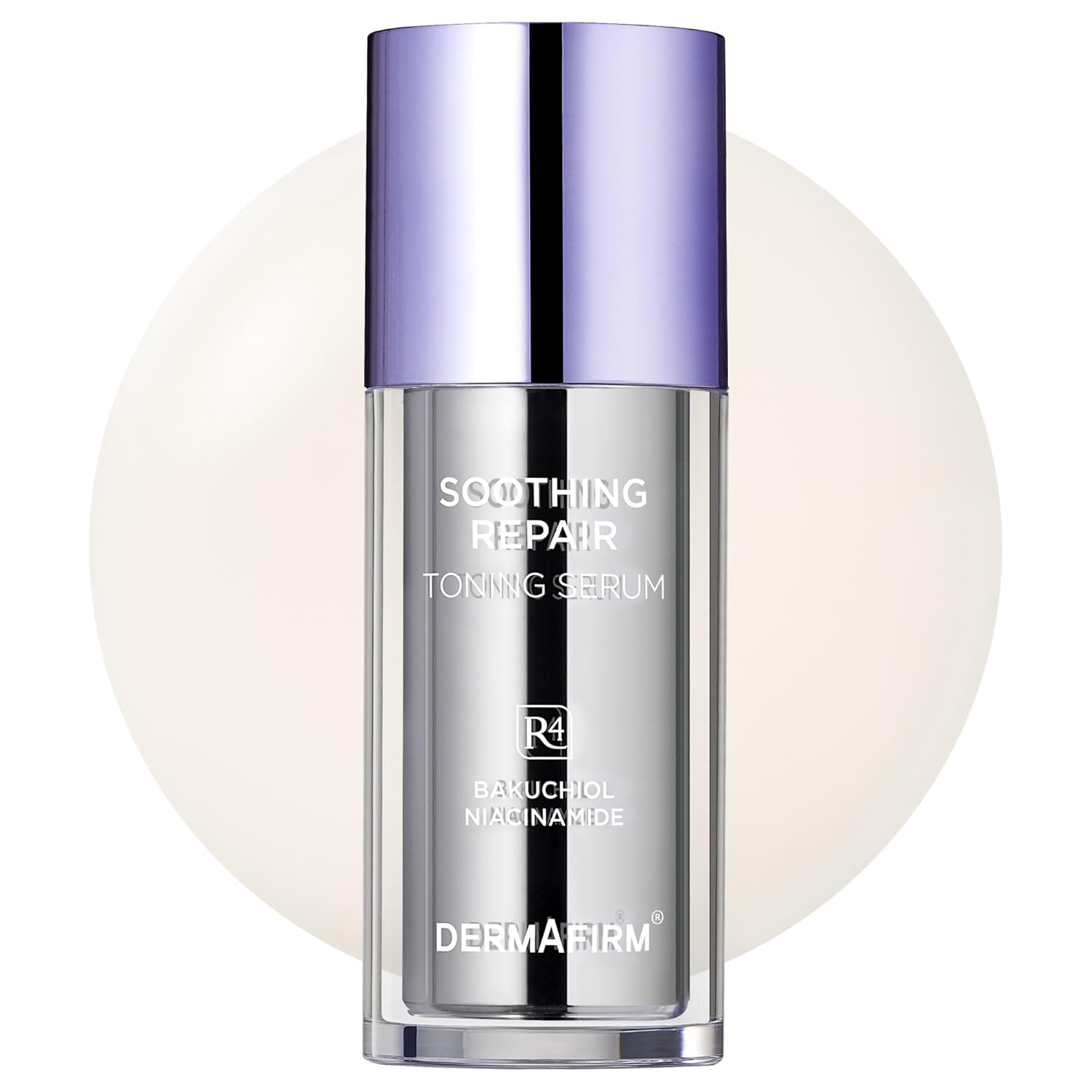 - NATURAL SKIN TRANSFORMATION: DERMAFIRM Soothing Repair Facial Serum R4, Korean Face Serum combines the power of bakuchiol (a natural retinol alternative) and niacinamide to target skin concerns like dark spots and uneven tone. Experience visibly improved skin with these gentle yet effective ingredients. It uses the potency of natural botanicals such as Eucalyptus, Collagen, Peptides and Perilla leaf, offering a holistic solution to skin imperfections like freckles and age spots and wrinkles.