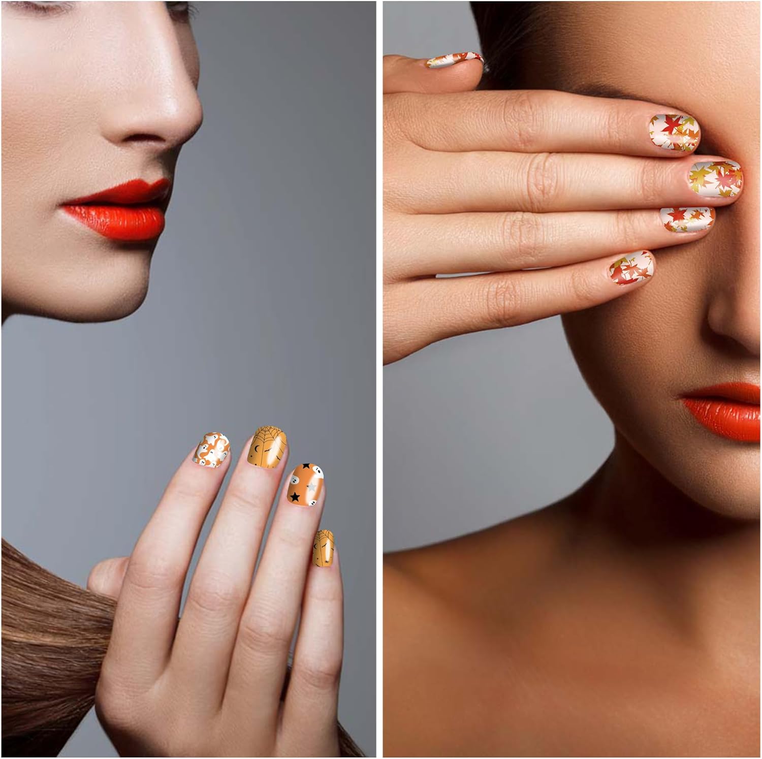 - [Holiday Nails Design] Designed exclusively by DANNEASY, the nail wrap include various Fall and Halloween elements are combined with a mix and match of light and dark, solid, gradient colors. match nail decoration, nail decals and other nail accessories, you can easily obtain elegant nail art.