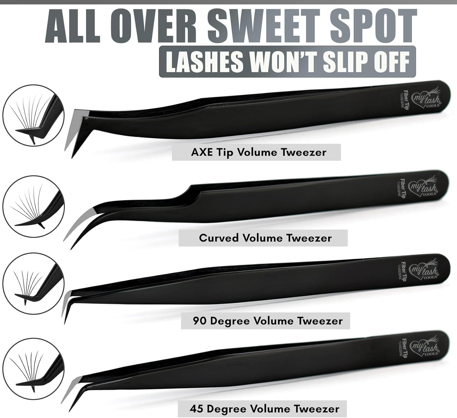 - COMFORTABLE TO USE - Perfect for all lash artists—beginners to pros. Lightweight, durable, and precise. Ideal for volume lashes, with a complete grip and all over sweet spot. Fiber tip tweezers are easy to carry packed in case. Your ultimate lash tech must-haves! Prefect for isolation & mega volume.