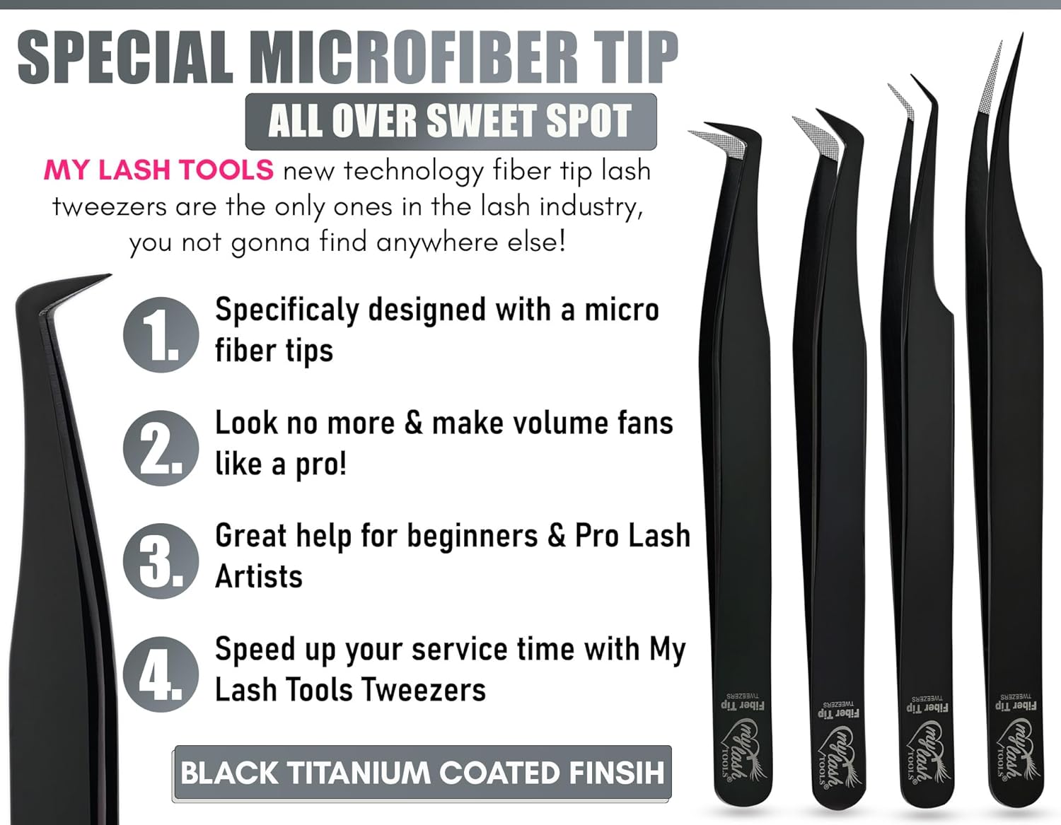 - ๐ COMFORTABLE TO USE - Perfect for all lash artistsโbeginners to pros. Lightweight, durable, and precise. Ideal for volume lashes, with a complete grip and all over sweet spot. Fiber tip tweezers are easy to carry packed in case. Your ultimate lash tech must-haves! Prefect for isolation & mega volume.