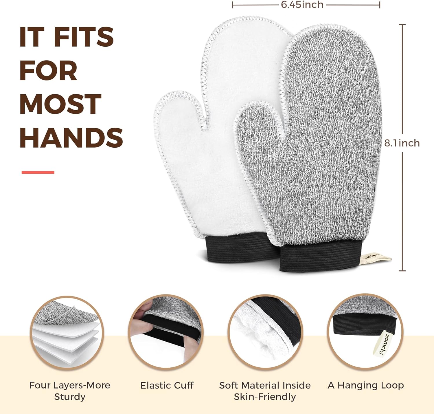 ZOMCHI 2 Pack Deep Exfoliating Glove with Dual Texture, Massage Body Scrub Gloves for Home Spa, Exfoliating Mitt for Dead Skin Removal (Deep + Soft)