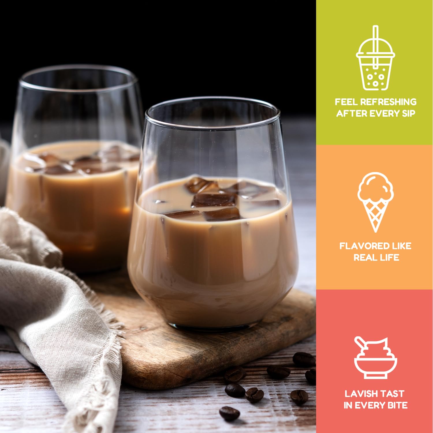 - ๐๐ฐ๐๐๐ญ ๐๐ง๐ ๐๐ฑ๐จ๐ญ๐ข๐ ๐ ๐ฅ๐๐ฏ๐จ๐ซ: Each Fanale coconut jelly boba tea variety is infused with sweet and exotic flavors that complement a range of recipes. This nata de coco jelly topping includes strawberry, lychee, blueberry, mango, sakura, green apple, coconut, Konjac, and coffee flavors, adding a distinct and delightful twist to your creations.