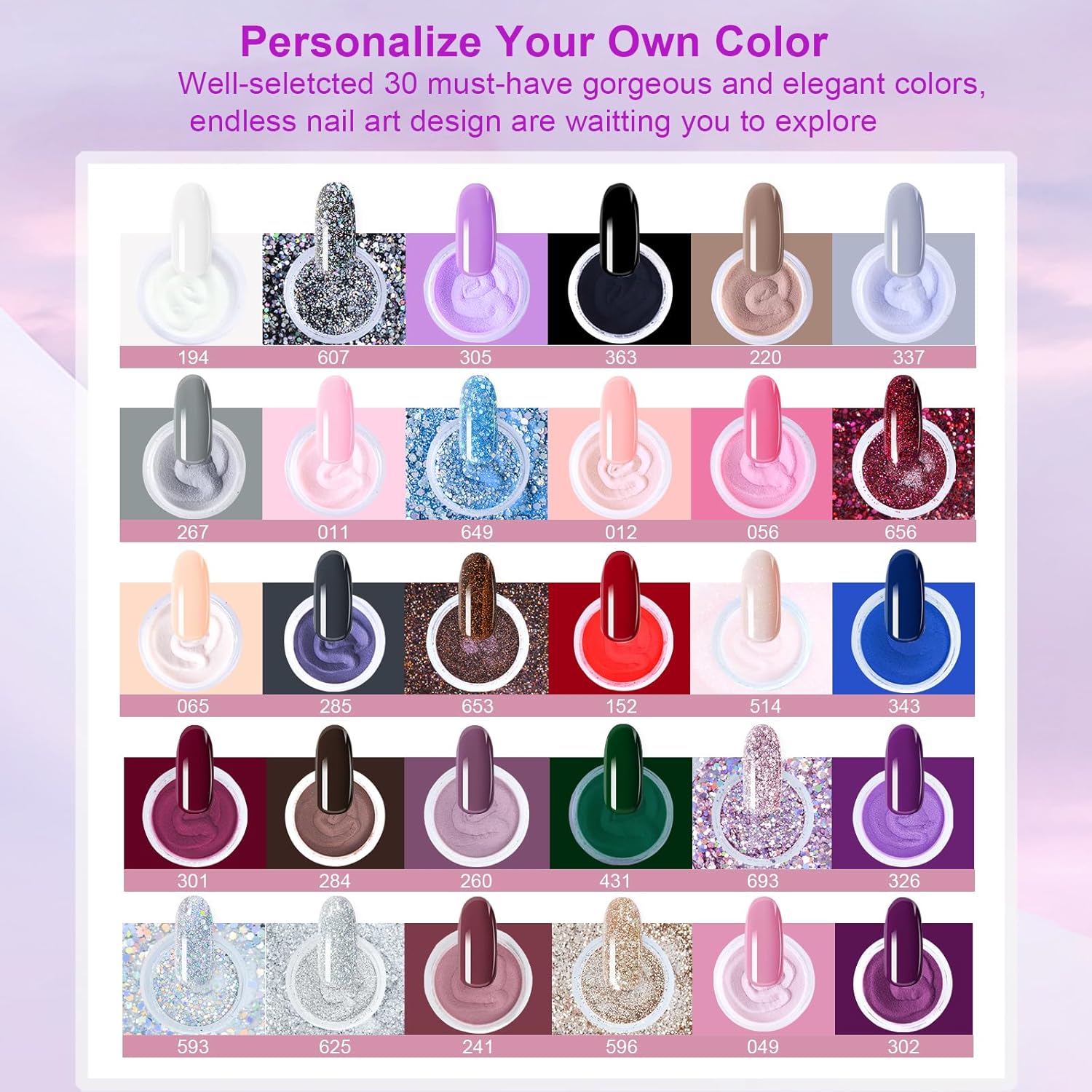 - 【What You Get】Dip Nails Powder Starter Kit including 30*0.35oz dip powder, 4*0.5floz dip liquid set, 1* Nail Brush, 1*Nail file, 2*Substitute brush, 2*Nail Stick, 1*Cuticle Pusher. A kit containing all your nail art needs.