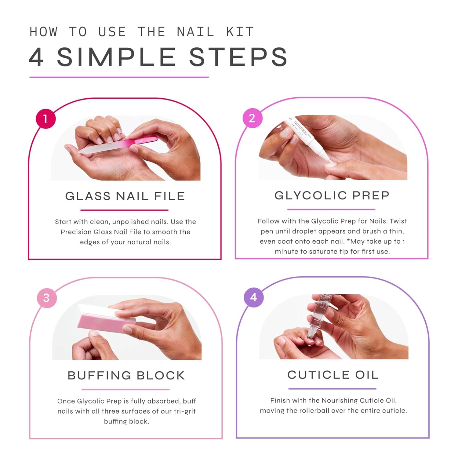 - High Shine Without Polish: The Tri-Grit Buffing Block in this nail kit creates a glass-like finish on your nails, eliminating the need for nail polish. This means no chipping!