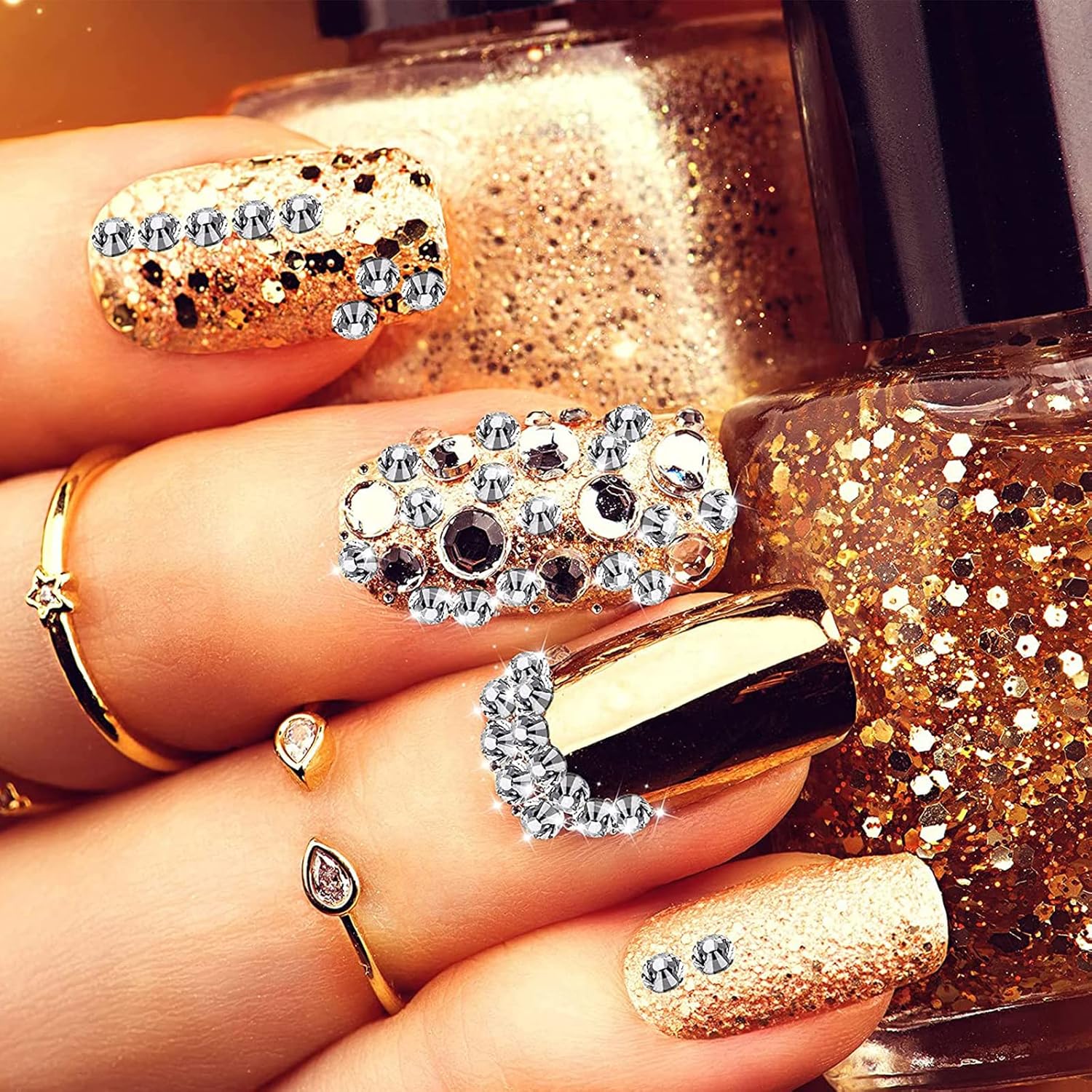 - APPICATION - Nail diamonds are enough for decorating your nail art, eye makeup, body art, phone, bags, greeting cards, clothes, wedding dress and and other art works etc.