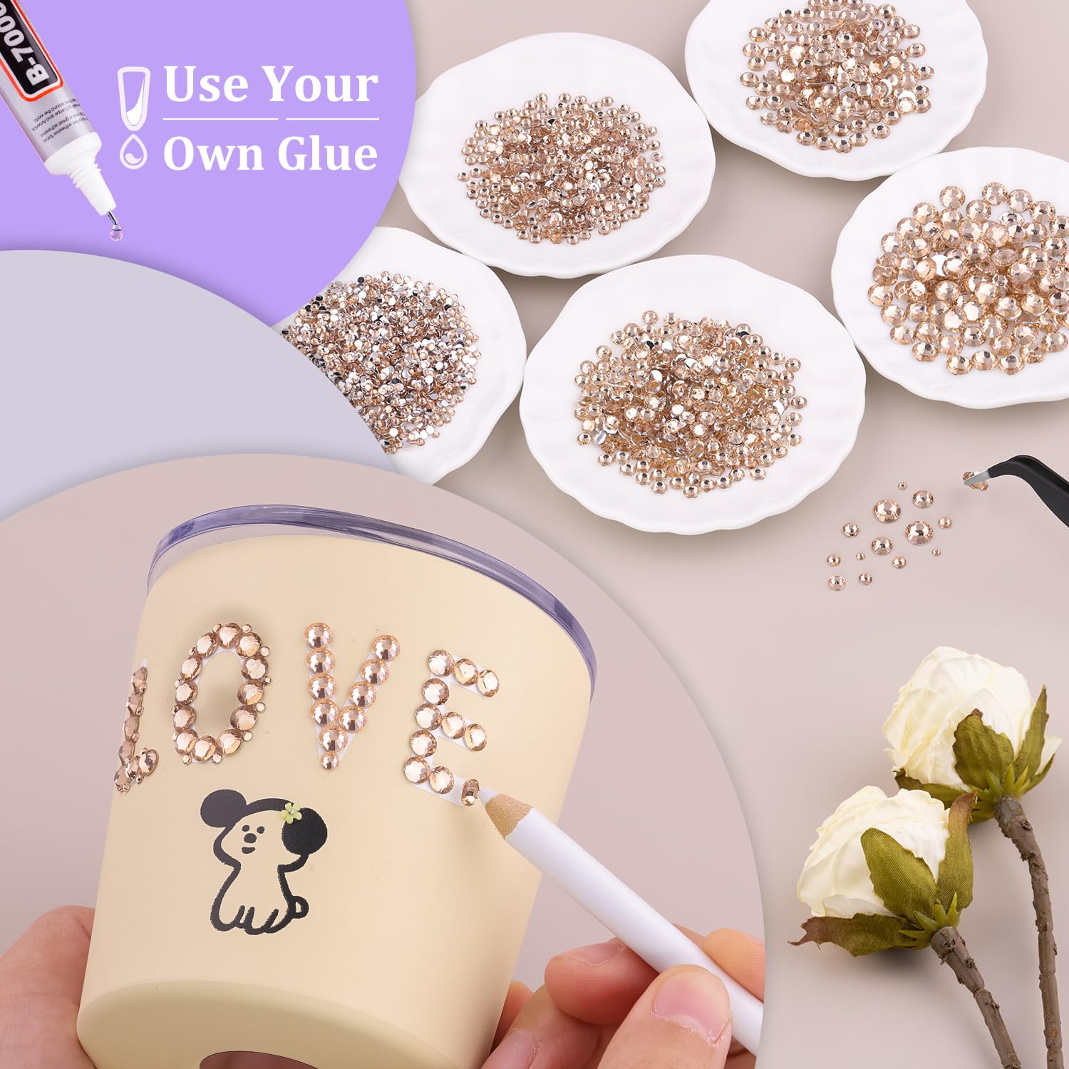 - 💎TIPS FOR USE -- Non-hot fix flatback gemstones require adhesive for nail art, crafts, or artwork design. We recommend using B7000 jewelry glue for DIY projects and UV / quick dry nail glue for nail art. To apply the resin rhinestones, first, clean the surface of your nails or the crafts you wish to embellish. Then, apply the rhinestones with the appropriate glue and wait for them to dry. (Please note that glue is not included.)