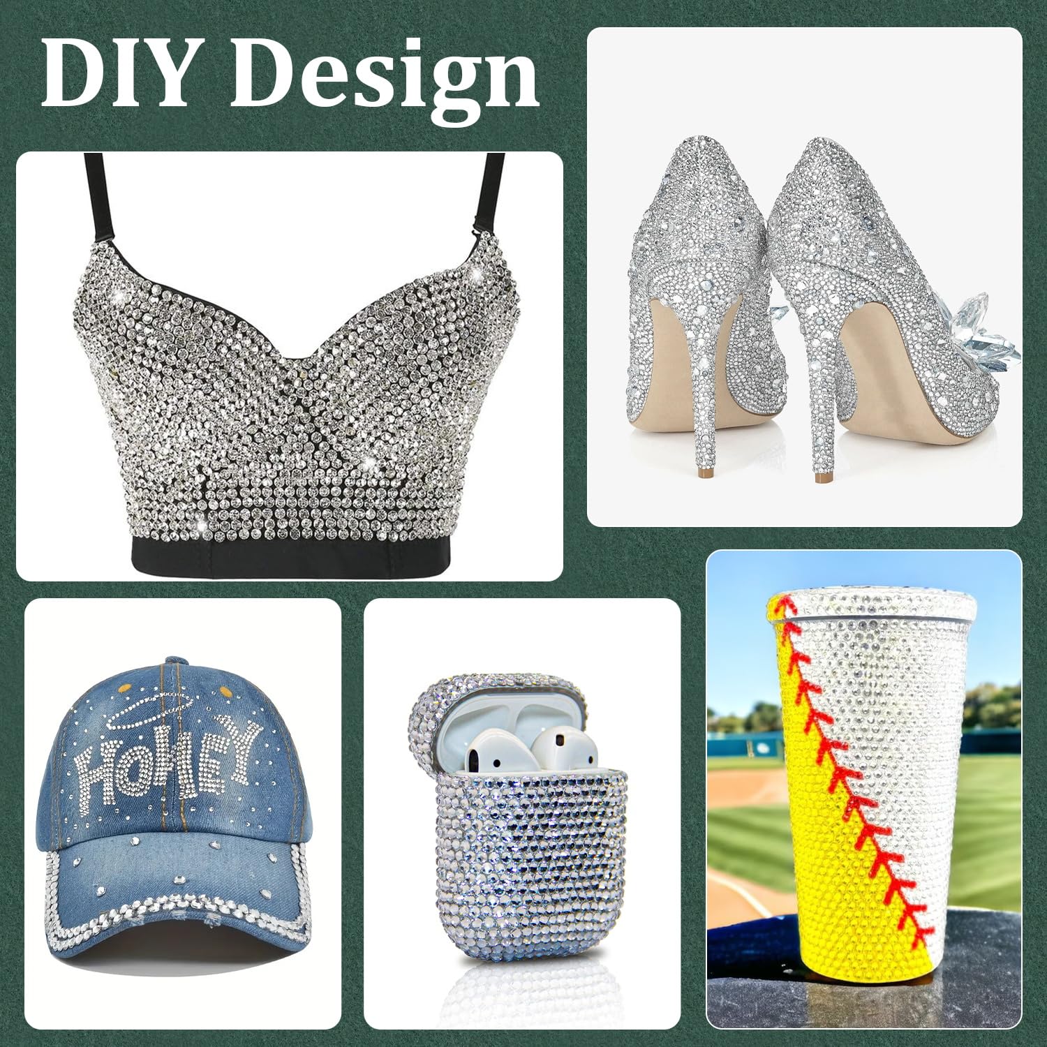 - WIDE APPLICATION -- These sparkling iridescent resin crystals are perfect for creating dazzling looks. Use them for bedazzling DIY crafts like shoes, tumblers, mugs, bottles, phone cases, popsockets, scrapbooks, photo frames, diamond paintings, greeting cards, bags, glasses, guitars, keychains, hats, masks, hair clips, bracelets, wristbands, clothing, wedding dresses, and more. Apply it to what you want to bling!