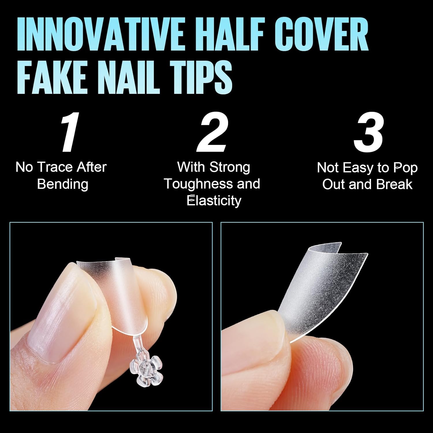 - 【Natural Fit Effect】TOMICCA half cover nail tips have a“Thin back edge, thick front edge”. The thinner back edge allows the cover tip to fit your nail better without making you feel uncomfortable, The thicker front edge makes it not easy to break. No c curve nail tips made with perfect length and thickness., and your nails will look more natural.