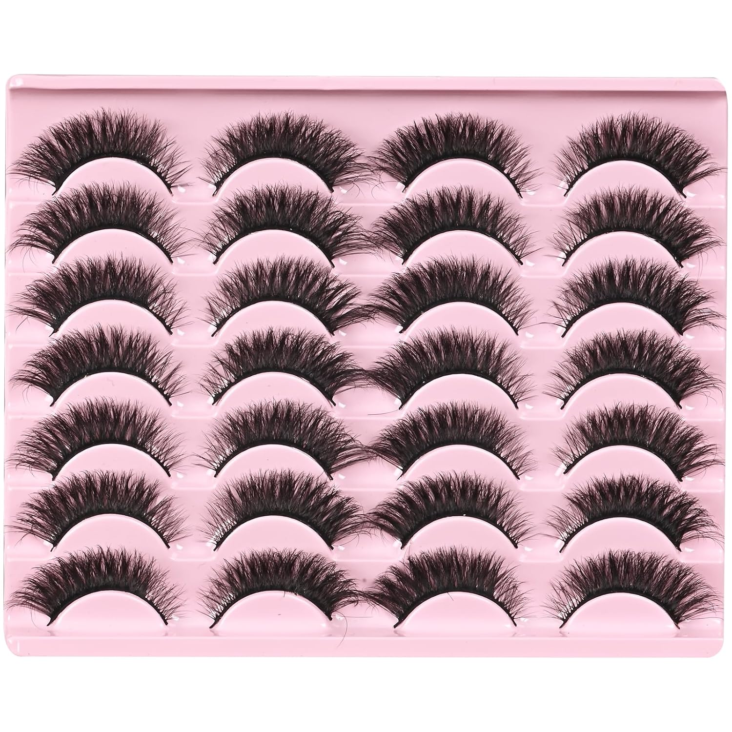 FARRED Natural Lashes Short Eyelashes Wispy False Mink Lash Pack 14 Pair Fluffy Cat Eye Strip Eyelash that Looks Like Extensions Small Fake Lashes for MUA and Beginners Daily Makeup (F14 | 8-15mm)