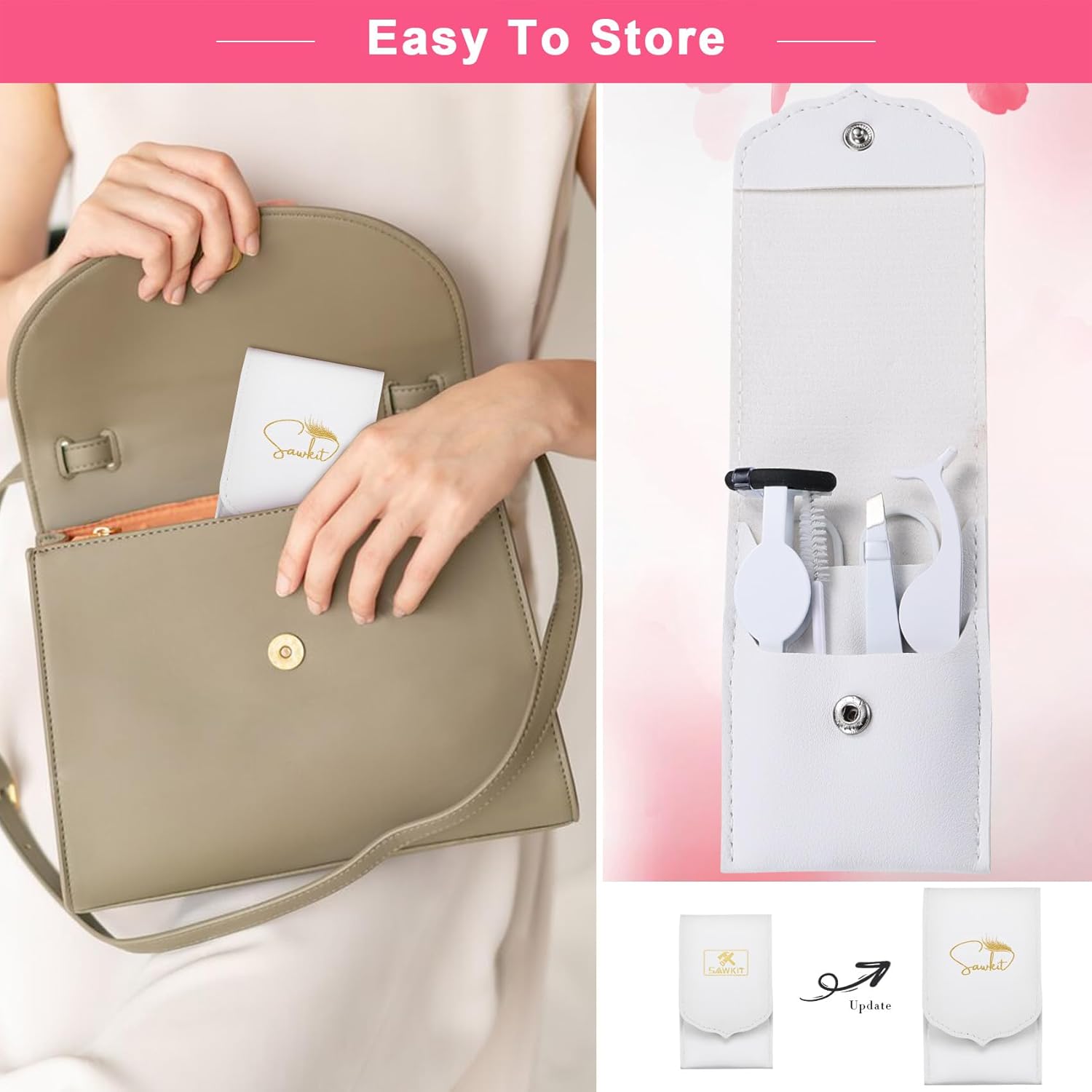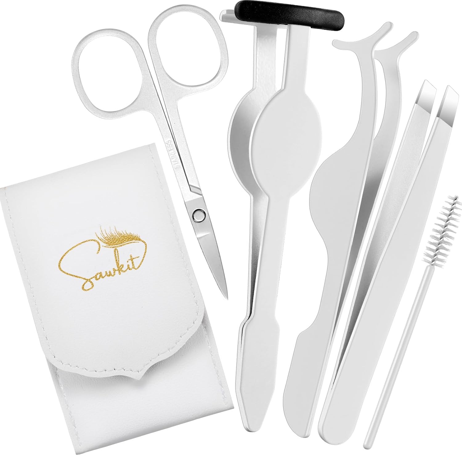 - Complete Eyelash Extension Kit: The Sawkit eyelash applicator tool kit includes 1 x false eyelash applicator tool, 1 x scissors, 1 x eyebrow tweezers, 1 x brush, and 1 x curved applicator tool, that provide an easy and rewarding DIY experience!
