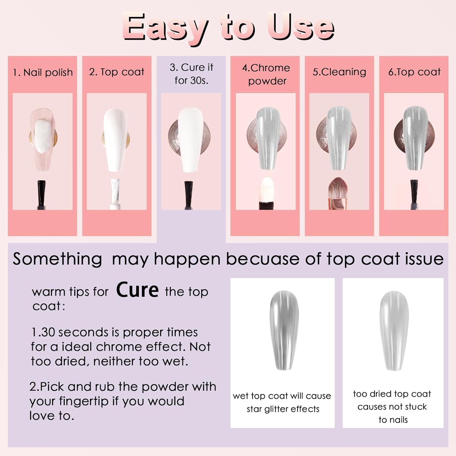 - Wide Usage: Allstarry Chrome Nail Powder Set is with 2 colors, which can perfectly match with chameleon flakes, nail charms, french manicure, 3D shell nails and etc, meeting your needs for different works. Whatβs more, the chrome powder for nails can also be applied on UV gel nails, acrylic nails, natural nails, and it can be mixed into nail gel polish or chrome nail polish for its solvent resistance.