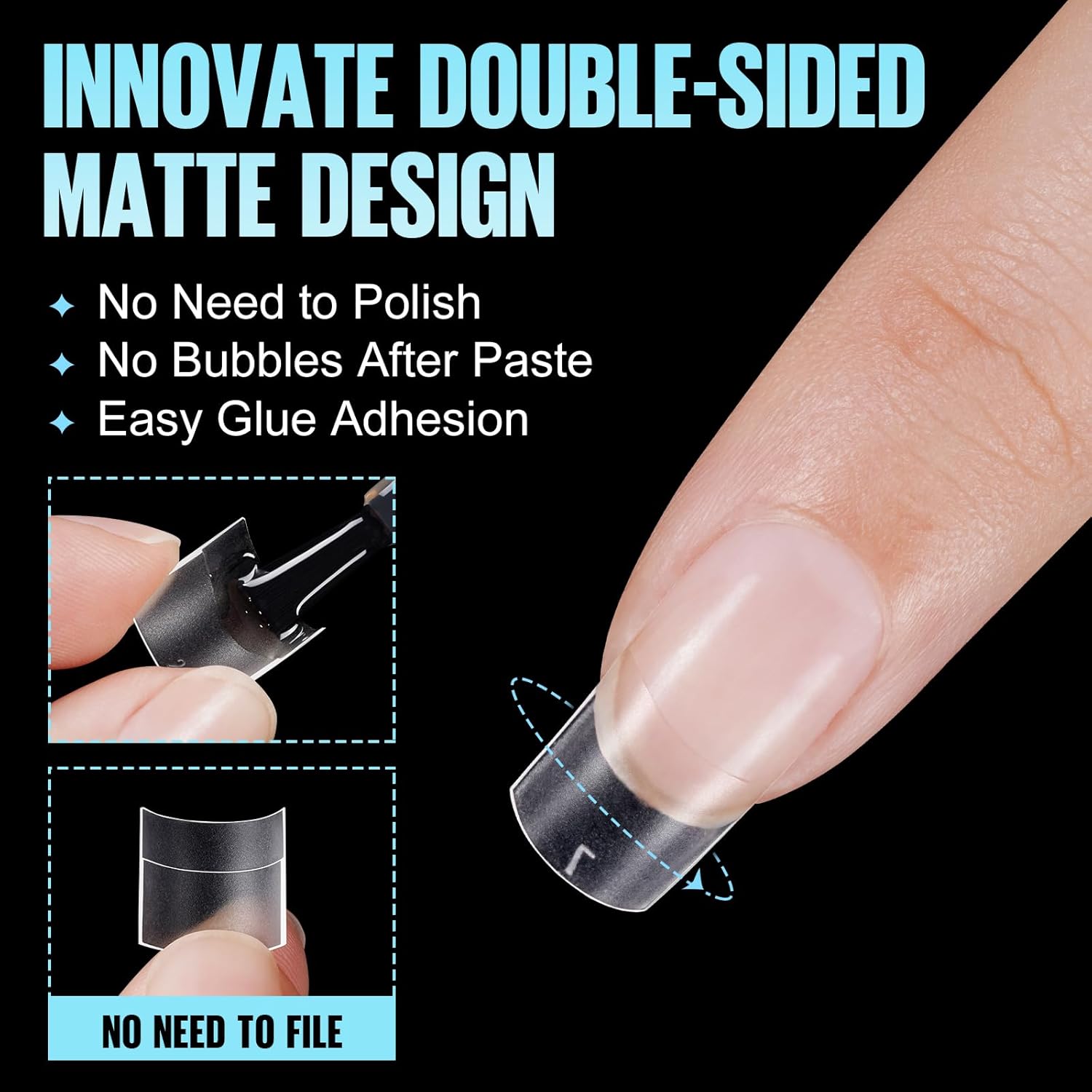 - 【Double Sided Matte Nail Tips】TOMICCA upgraded double-sided matte nail tip comes with regular granular shape. The inner wall adheres strongly to the nail, and the outer wall is easy to apply color glue. Our no c curve nail tips is easier to stick to the nail instantly, provide better care for your nails.
