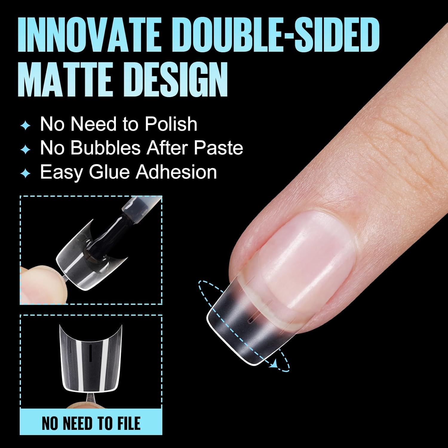 - 【Double Sided Matte Nail Tips】TOMICCA upgraded double-sided matte nail tip comes with regular granular shape. The inner wall adheres strongly to the nail, and the outer wall is easy to apply color glue. Our no c curve nail tips is easier to stick to the nail instantly, provide better care for your nails.