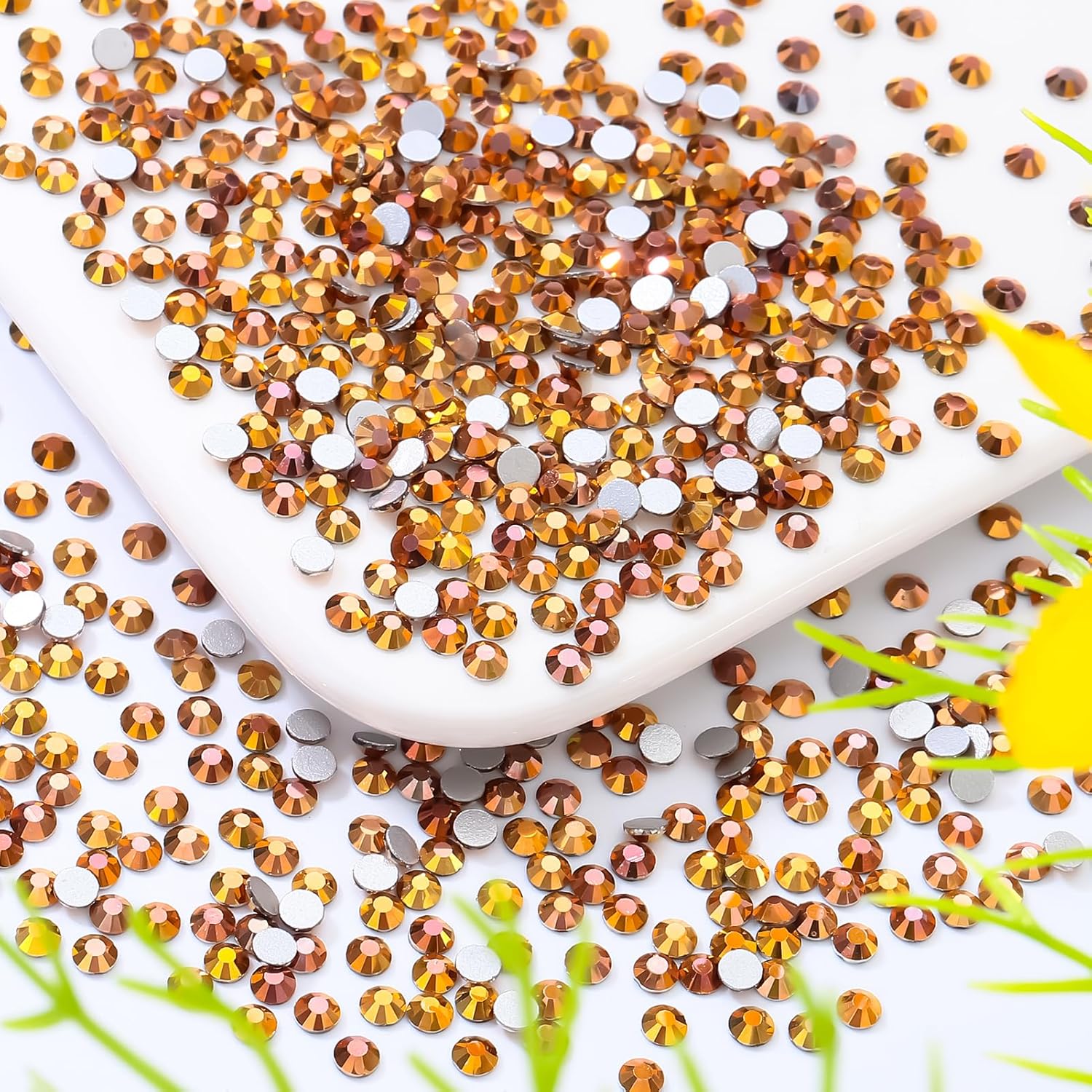 Gold Flatback Rhinestones, Glass Rhinestones for Nail Art and Craft, Glue Fix, Loose Crystal Gemstones(Gold, SS8, 1440pcs, 2.3-2.5mm)