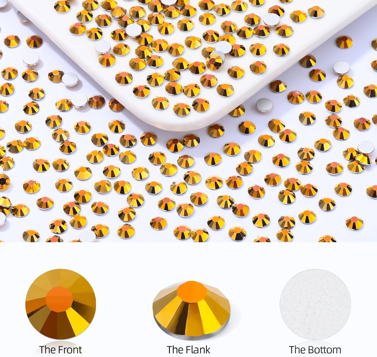 Gold Flatback Rhinestones, Glass Rhinestones for Nail Art and Craft, Glue Fix, Loose Crystal Gemstones(Gold, SS30, 288pcs, 6.4-6.6mm)