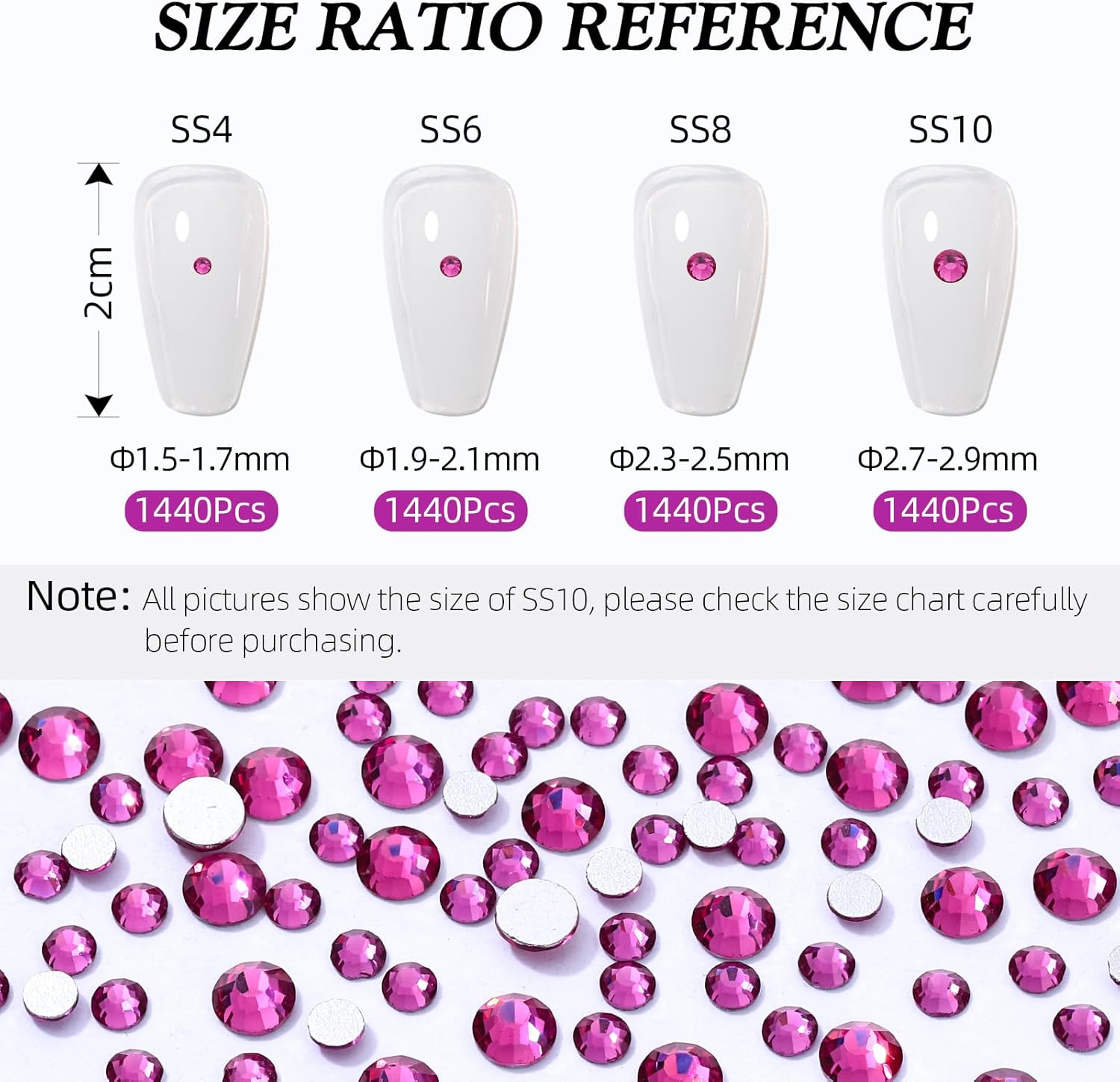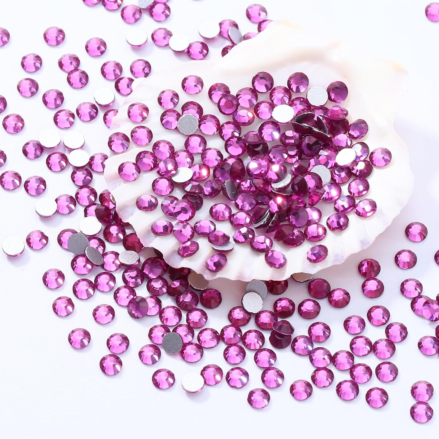 Fuchsia Flatback Rhinestones, Glass Rhinestones for Nail Art and Craft, Glue Fix, Loose Crystal Gemstones(Fuchsia, SS10, 1440pcs, 2.7-2.8mm)